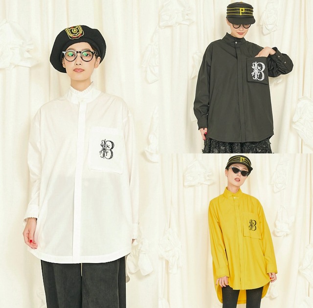 【 THOMAS MAGPIE 】 ハイネックBIGシャツ color ホワイト/ブラック/イエロー/サックス 素材 :ポリエステル80% コットン20% サイズ:フリー ⬜︎洗濯方法:手洗い可 ⬜︎サイズ:画像内記載 ※商品によって若干の誤差が生じる場合があります 【デザインの特徴:デザイナー 奥村展子】 初めてのデザイン。フリル付きのハイネックオーバーサイズシャツをデザインしました。フロントはボタンでフルオープンになります。被りにせず、着やすく、メイクがつく心配がないようにフルオープンにしています。上品な雰囲気の襟になっていますが、身頃は大きめにしてみました。フロントよりも、後ろが長めで、背中のヨークからタックを大きく入れて広がりあるデザインにしました。裾は三つ折りで たたくのではなく、見返しをつけてしっかりさせて、広がるシルエットになるようにパターンを作っています。スタッフにはかなり人気でホワイトはもちろんですが、イエローが目を引き印象に残るシャツです。おそらくホワイトが1番人気になると思いますが、私はイエローが気に入っています。ブラック派の方は、ブラックカラーをお勧めします。大人っぽく、汚れが気にならずに長く愛用できそうです。 ポケットをつけて、その部分に大きめにBの飾り文字の刺繍を入れて、あまり無いようなデザインに仕上げています。 このBの文字も気に入っています。クラシックな装飾文字で今回のキーワードのNOT BOREのBを入れてみました。小柄な方はミニンピースとしても良さそうです。またはタイツにミニボトムと合わせてもとても可愛いと思いました。 襟の筒は、やや大きめにしているので、首周りにストレスはないと思います。身頃、アームが大きめでどんな体型の方にも向いています。ですが袖丈は長すぎないので、女性がバランス良く着る事が出来る1枚です。150cmくらいの方から167cm以下の方に向いています。 手洗い推奨としてますが、私はノーアイロンで洗いざらしのまますぐ着てます。シワもほぼ気にならず着られるシャツ。トーマスマグパイでは定番的に採用している秀逸なコットンポリの素材です。 サイズはメーカー採寸サイズとなります。 商品によってはどうしても若干の誤差が発生してしまいます。予めご了承ください。 ※不良品以外の返品・交換は受け付けておりません。 サイズは充分に確認してからのご注文をお願い致します。 ※送料について お届け先が沖縄・離島の場合、購入金額に関わらず 送料¥1,100をお願いしております。 オンラインショップトップの送料¥1,100をご一緒にカートへお願い致します。 沖縄・離島のお客様にはご迷惑をおかけ致します。 ¥16800+tax