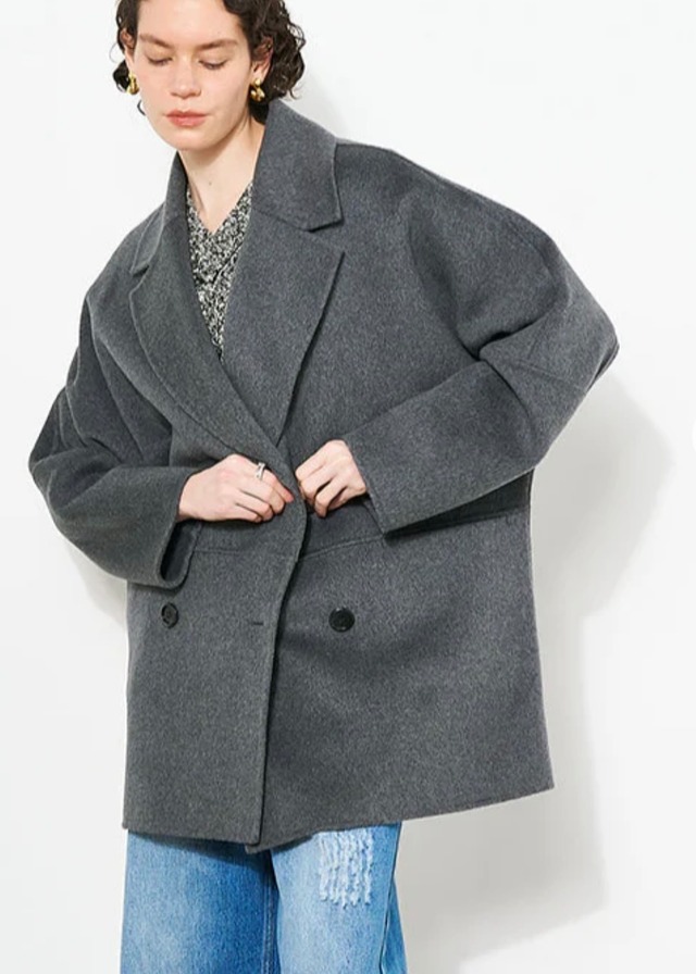 【 YENN 】 DOUBLE FACE PEA COAT color BROWN/CHARCOAL material ウール:70% / ポリエステル:30% リバー仕立てのピーコートです。 リバー仕立てとは、2枚の生地を貼り合わせ、手作業でまつり縫いをすることで、縫い目が見えない洗練されたデザインになる仕立てで、軽くて柔らかい着心地が特徴です。 ウール70%の高級感のある生地を使用、暖かさと軽やかさを両立したなめらかな肌触りが特徴の生地です。 一般的なピーコートよりもゆったりとしたサイズ感で、リラックスした雰囲気を演出。 ボリュームのあるシルエットが今っぽく、トレンド感のあるスタイリングが可能です。 クラシックとモダンを融合させた、大人の洗練されたスタイルにぴったりのアイテムです。 着丈:81.5cm 身幅(半身):62cm 後肩幅:38cm 裄丈:83.5cm 【取り扱い方法】 ドライ サイズはメーカー採寸サイズとなります。 商品によってはどうしても若干の誤差が発生してしまいます。予めご了承ください。 ※不良品以外の返品・交換は受け付けておりません。 サイズは充分に確認してからのご注文をお願い致します。 ※送料について お届け先が沖縄・離島の場合、購入金額に関わらず 送料¥1,100をお願いしております。 オンラインショップトップの送料¥1,100をご一緒にカートへお願い致します。 沖縄・離島のお客様にはご迷惑をおかけ致します。 ¥50000+tax