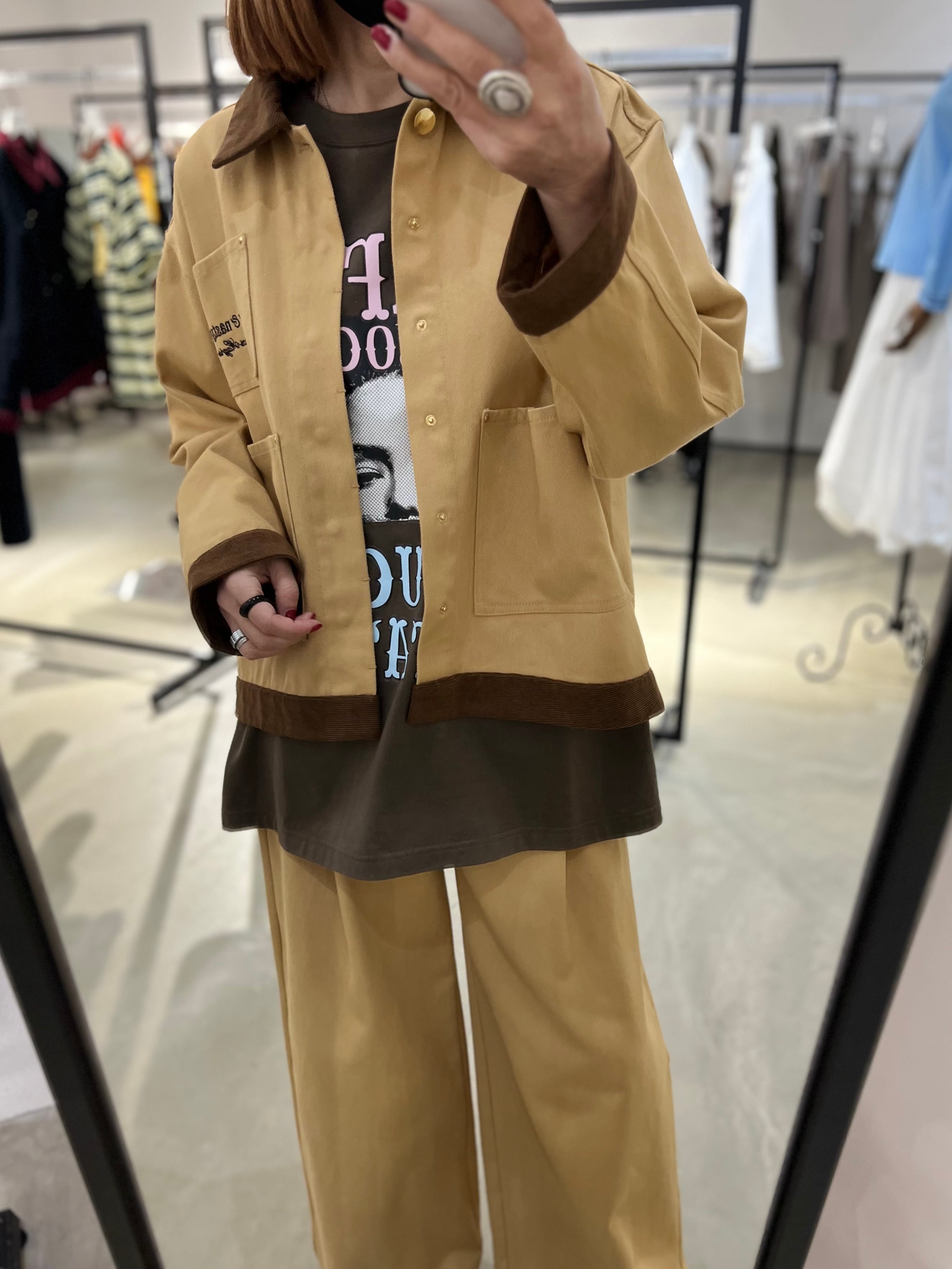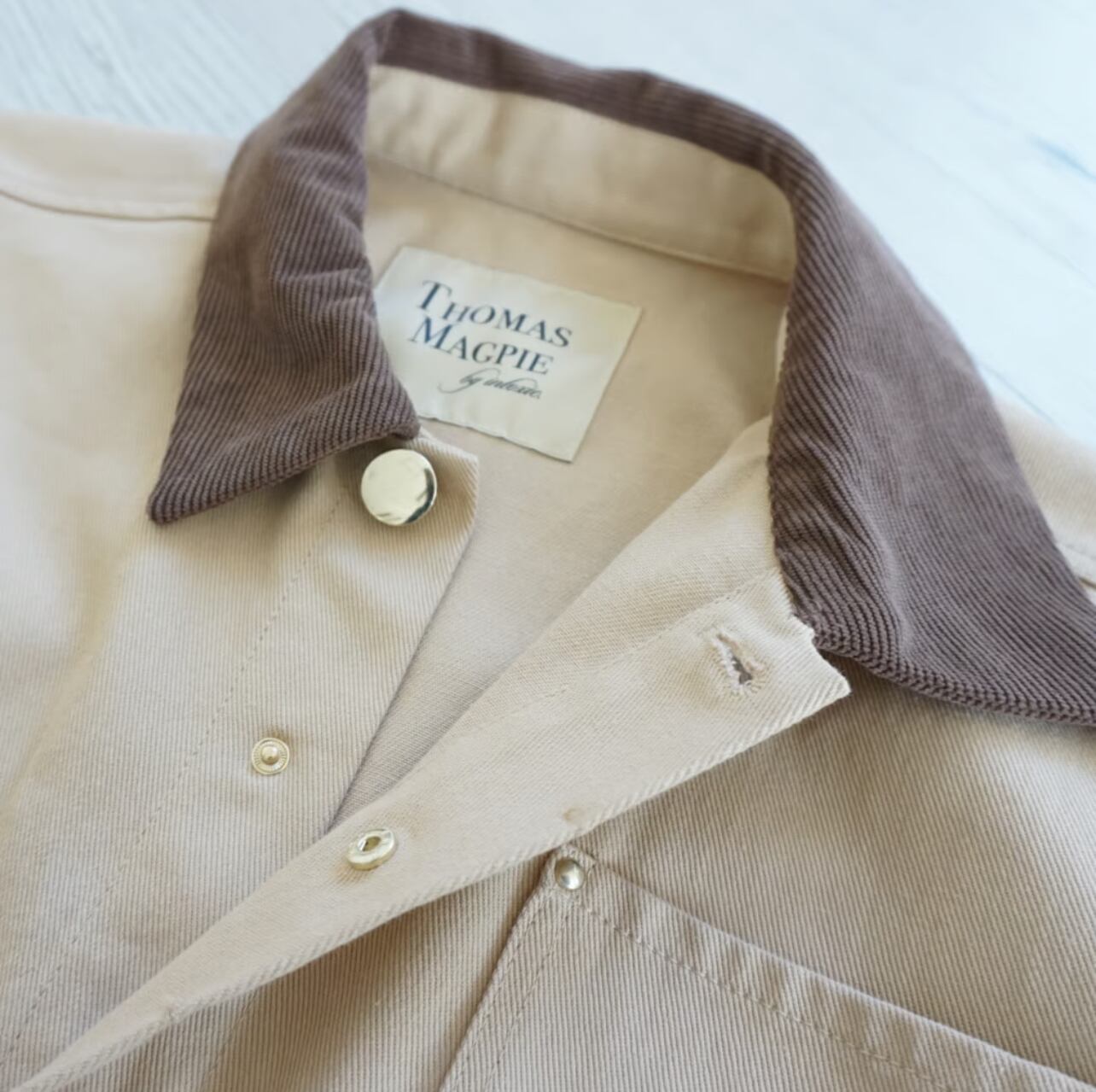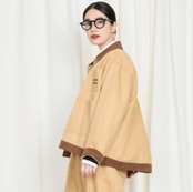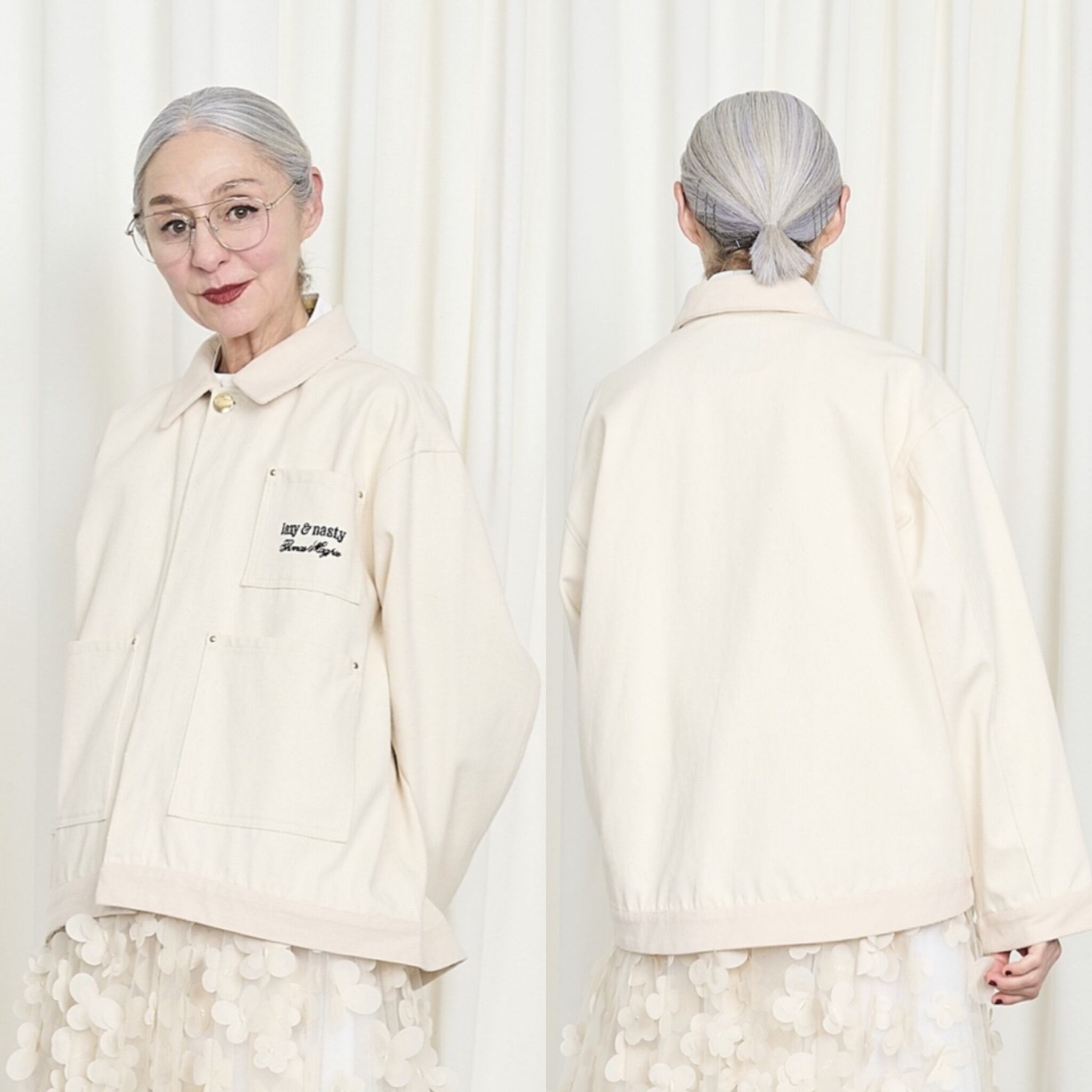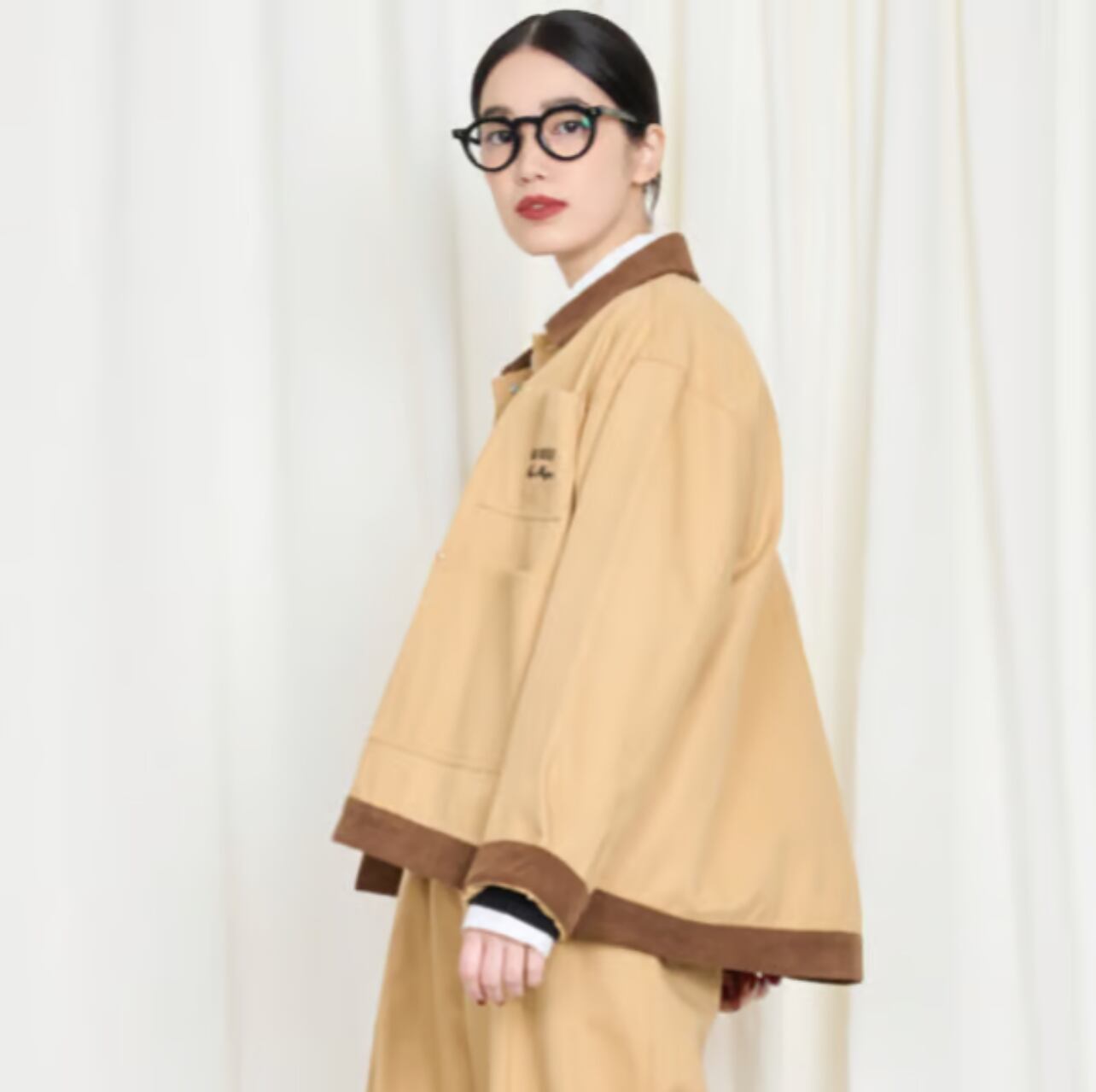 ゆったりめのサイズで着られるハンティングジャケットです。コットン100%の柔らかなツイル素材。80年代を思わせるクラシカルなコーデュロイのバイカラーの襟が印象的です。袖口も色を変えています。着丈は短めで、カーブした後ろの裾が少し都会的な雰囲気になっています。今の流行りも取り入れてみたくてデザインしました。フロントに3つのポケット。オーセンティックな雰囲気にしたくてリベットをつけています。胸元にLAZY AND NASTY 今回のテーマでもある”だらしなくてやばいやつ”のロゴを刺繍で入れました。身頃はメンズのMサイズ程度。羽織りやすくて、中に重ね着もできるゆったりとした身幅です。どなたでもサイズはあまり気にせずに着ていただけます。最初から肌触り良い膨らみのある綿を使用しており、とても柔らかな素材で、着心地も良いと思います。やや大きめのサイズですが着丈が短めなので、スカートスタイルにも向いています。ワークアイテムでありながら、都会的な雰囲気なので、デイリーのお洋服に合わせやすくて、トレンド感が楽しめるジャケットになっています。私のお勧めは、ベージュです。ネイビーはレンガ色の襟がポイントになっています。こちらはデニムなどに合わせやすくて、少し大人のスタイルが楽しめそうです。今回、1番最初にデザインしたアイテムで、1番のお勧めです。流行に敏感な方はぜひチャレンジしてみてください。届く頃のこの秋の始まりに良かった、と思える新しい切り口のアイテムです。