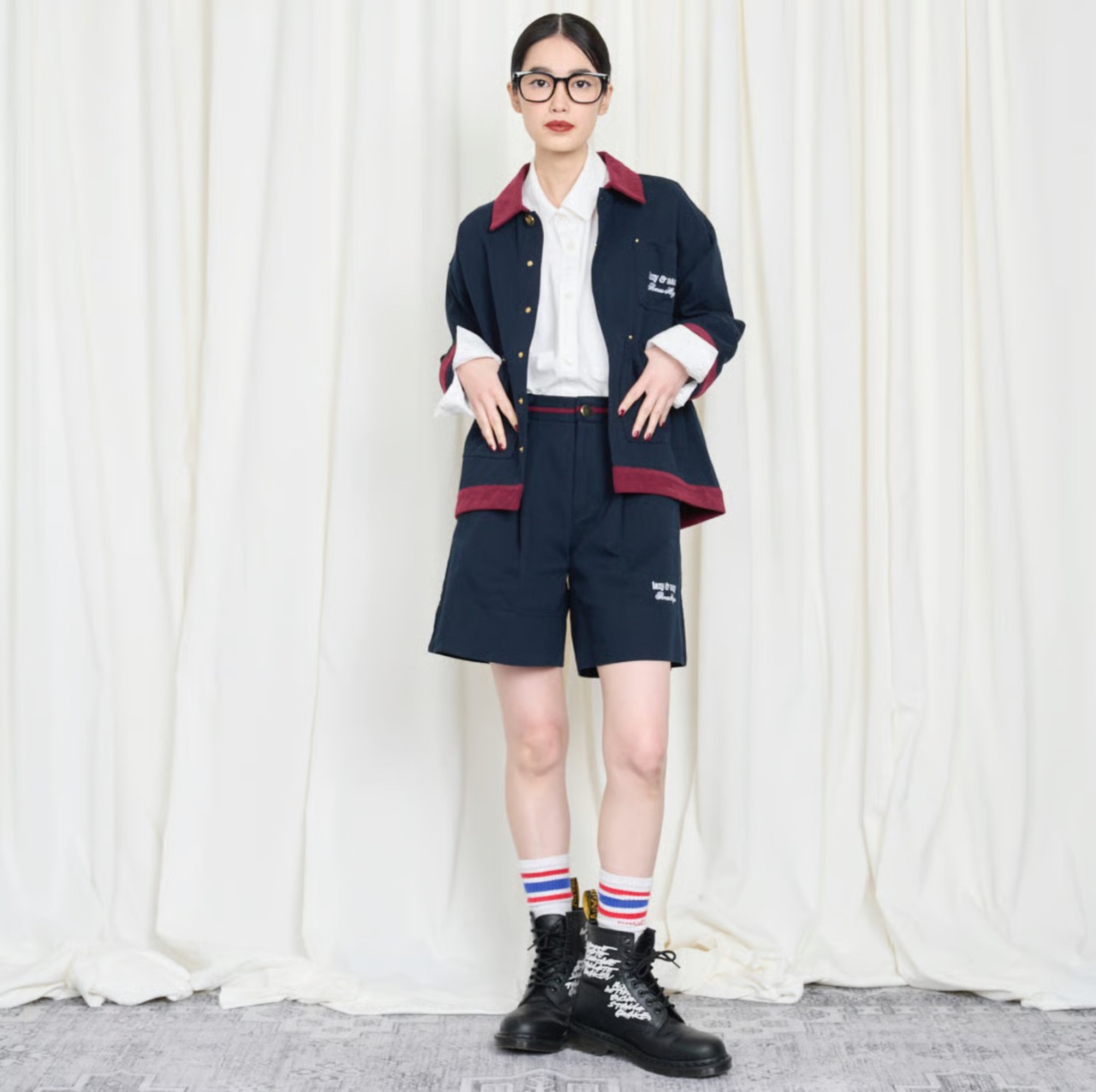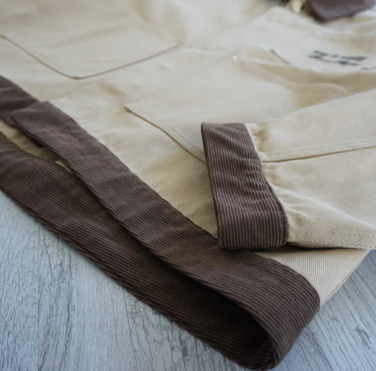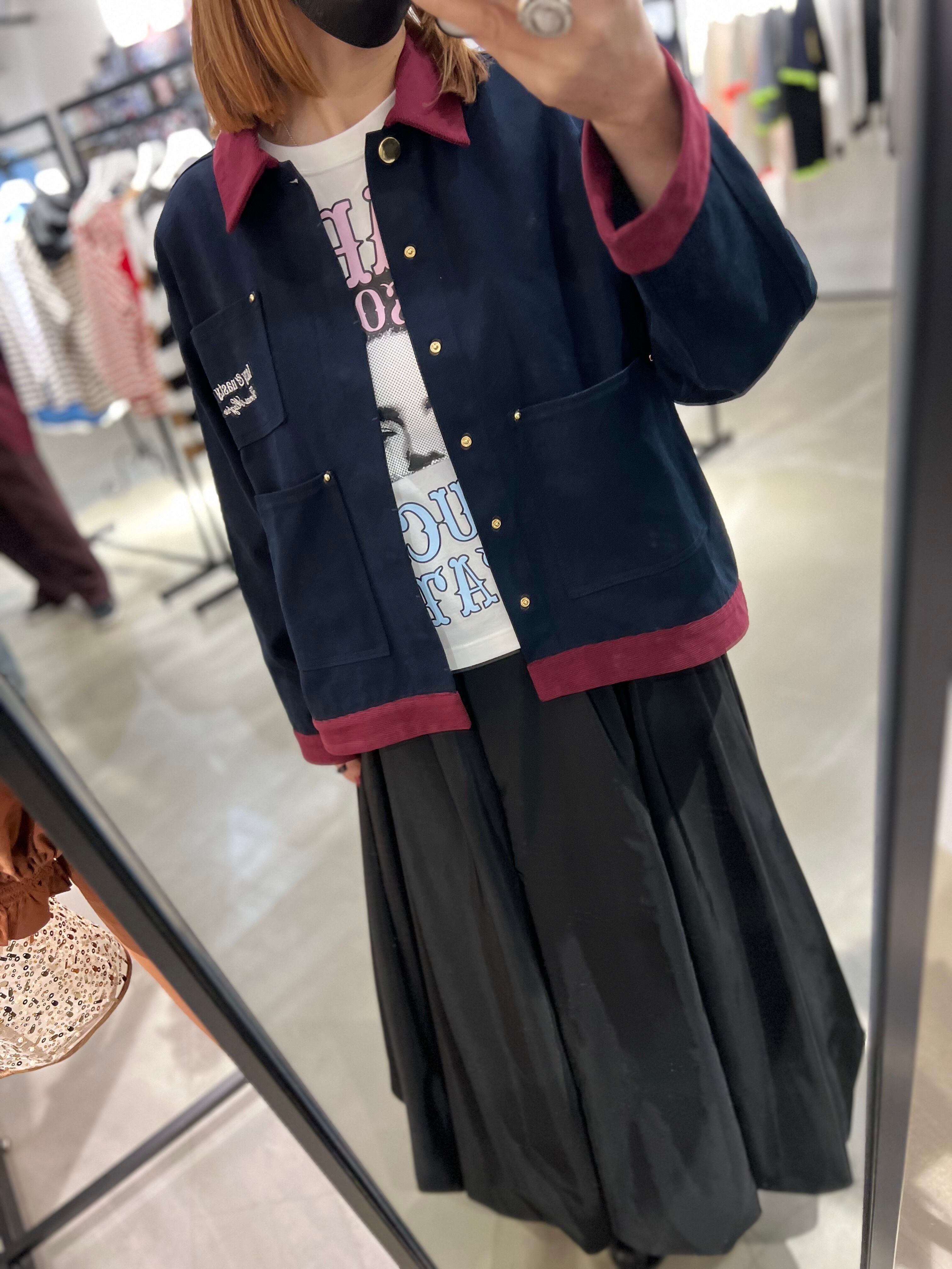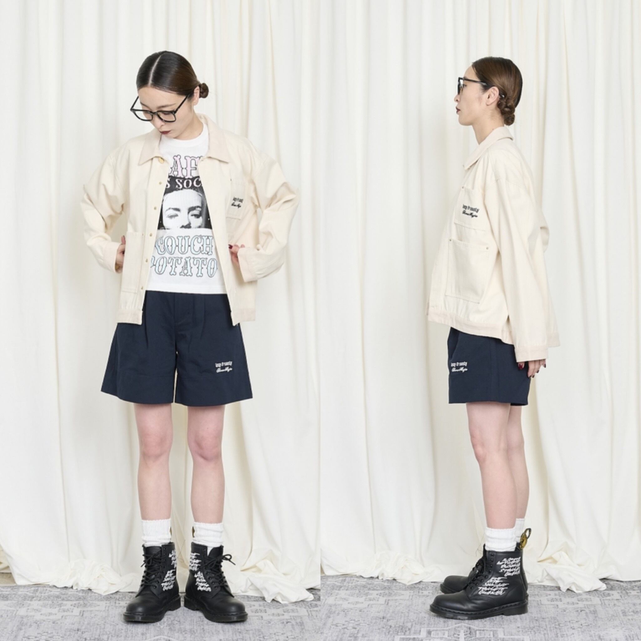 ゆったりめのサイズで着られるハンティングジャケットです。コットン100%の柔らかなツイル素材。80年代を思わせるクラシカルなコーデュロイのバイカラーの襟が印象的です。袖口も色を変えています。着丈は短めで、カーブした後ろの裾が少し都会的な雰囲気になっています。今の流行りも取り入れてみたくてデザインしました。フロントに3つのポケット。オーセンティックな雰囲気にしたくてリベットをつけています。胸元にLAZY AND NASTY 今回のテーマでもある”だらしなくてやばいやつ”のロゴを刺繍で入れました。身頃はメンズのMサイズ程度。羽織りやすくて、中に重ね着もできるゆったりとした身幅です。どなたでもサイズはあまり気にせずに着ていただけます。最初から肌触り良い膨らみのある綿を使用しており、とても柔らかな素材で、着心地も良いと思います。やや大きめのサイズですが着丈が短めなので、スカートスタイルにも向いています。ワークアイテムでありながら、都会的な雰囲気なので、デイリーのお洋服に合わせやすくて、トレンド感が楽しめるジャケットになっています。私のお勧めは、ベージュです。ネイビーはレンガ色の襟がポイントになっています。こちらはデニムなどに合わせやすくて、少し大人のスタイルが楽しめそうです。今回、1番最初にデザインしたアイテムで、1番のお勧めです。流行に敏感な方はぜひチャレンジしてみてください。届く頃のこの秋の始まりに良かった、と思える新しい切り口のアイテムです。