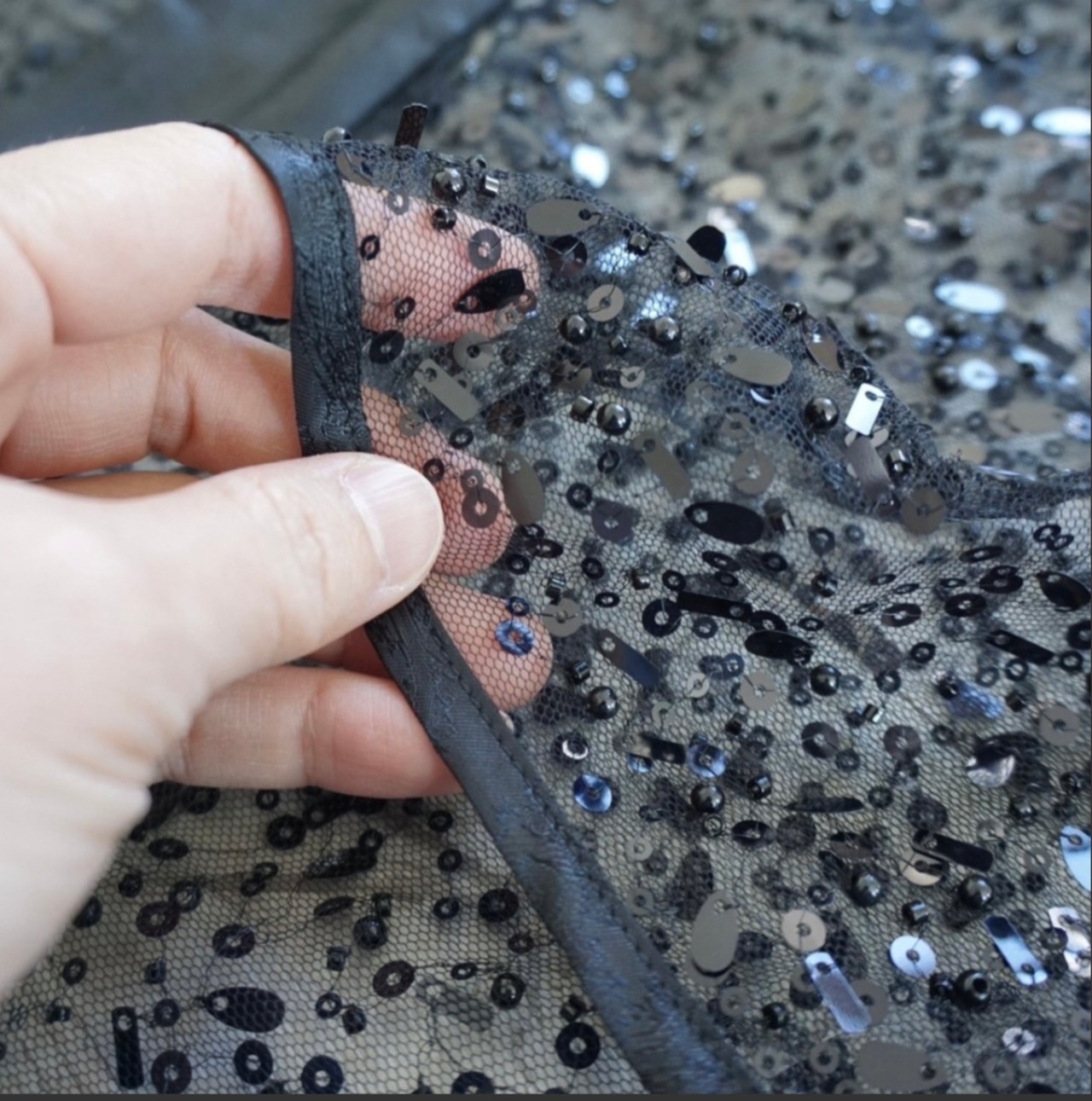 この製品は生地にスパンコールを縫い付けています。生地の特性上、着用や着脱の際の摩擦、衝撃で欠けたり、引っ掛けで脱落することがあります。生地の特徴としてご理解ください。