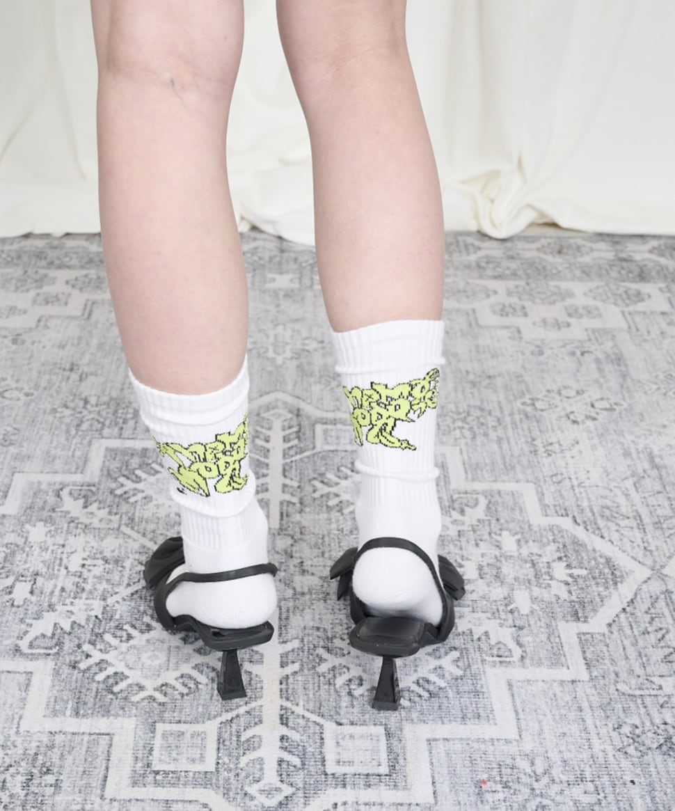 靴下とステッカーのグラフィックは、GP.a.k.a.N.O.B.B (GREEN PEACE)餓鬼レンジャーのトラックメイカーで音楽プロデューサー