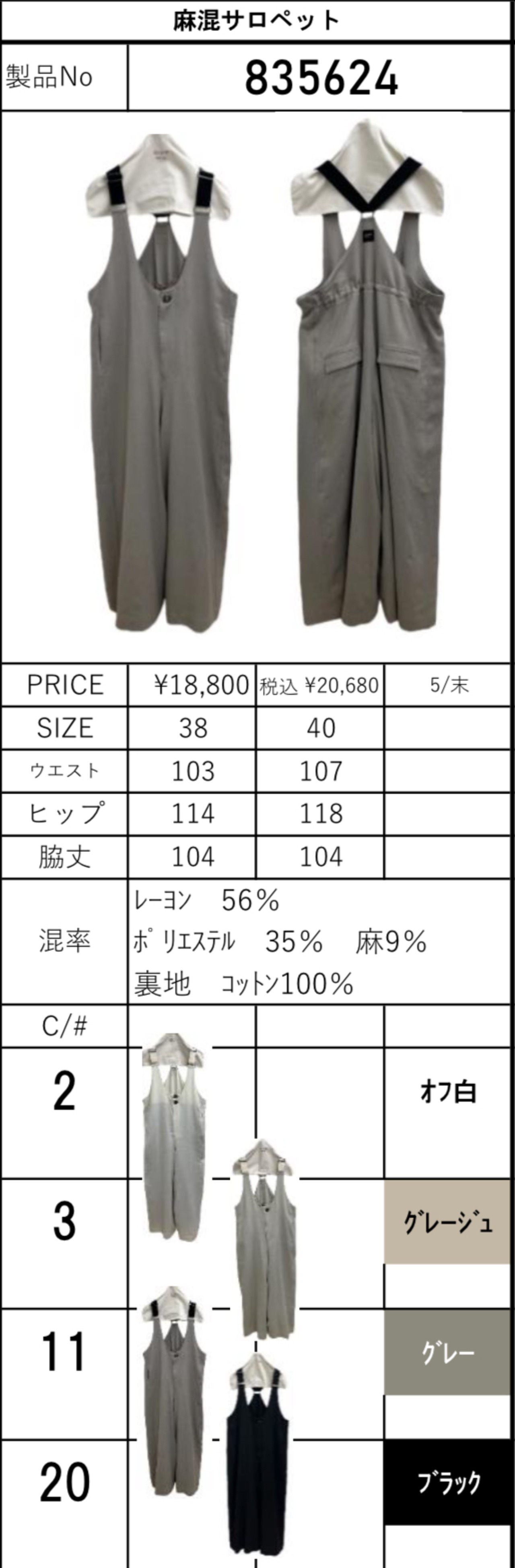 予約販売【 ayane 】麻混サロペット (835624) 5月下旬お届け