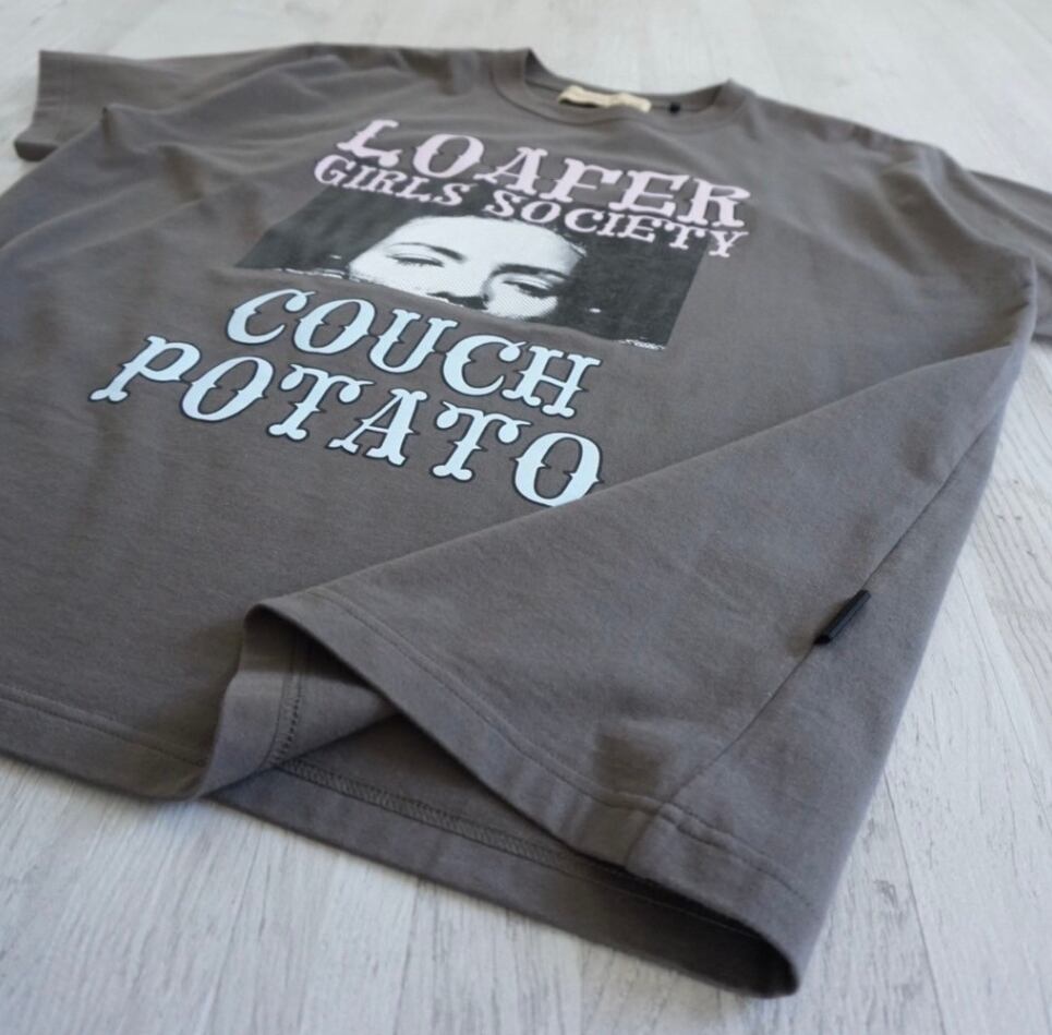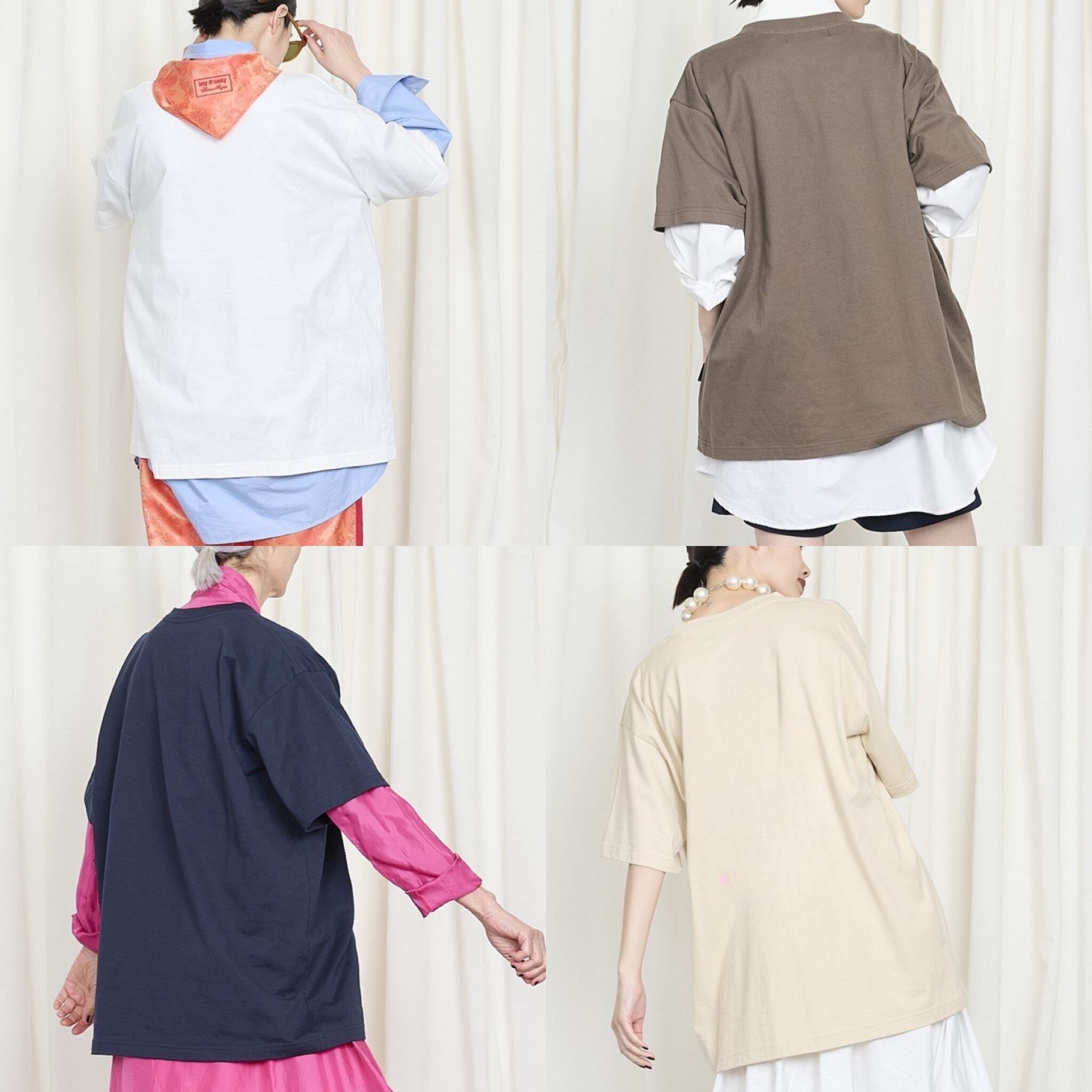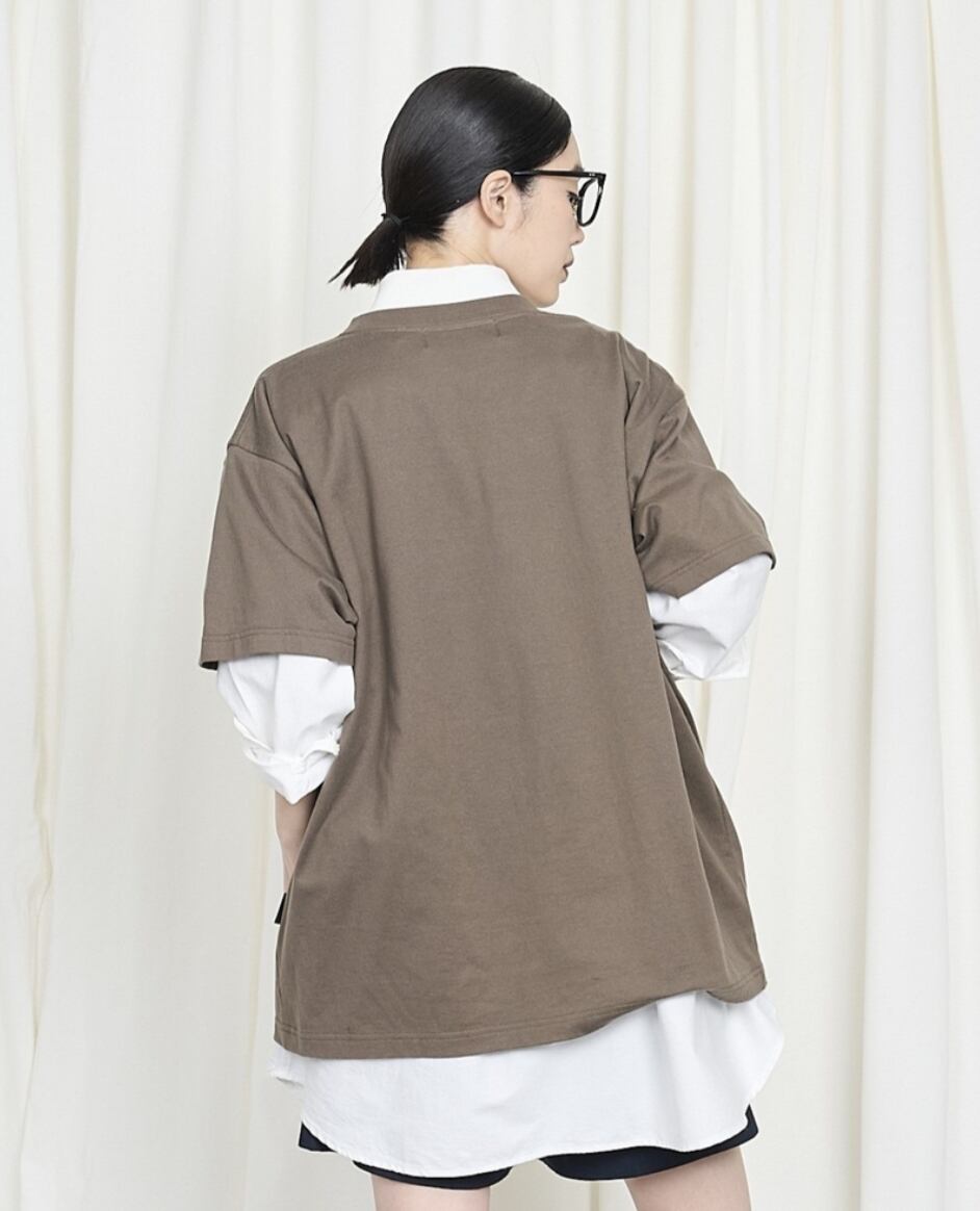 サイズはいつもの人気のビッグサイズです。Tシャツは毎回安定してとても人気ですが、今回はこのロゴがスタッフに大変好評だったので予約商品に選びました。男性にも女性にもとても人気の体型を選ばないサイズ感になっています。今年はシャツやポロシャツをインしたりして重ね着を楽しんでほしいと思っています。以前販売したビッグポケットシャツとのサイズバランスが好相性です。ややブラウンみのあるチャコールグレーでブラックほどの強い色味ではなく何にでも合わせやすそうなカラーです。ロゴが薄いピンクになっていてこのカラーリングが気に入っています。トーマスマグパイのTシャツはオリジナルボディで耐久性があるコットン100%。日本で作っています。今回はしっかりとした肉感にしていて身体のラインを拾いません。