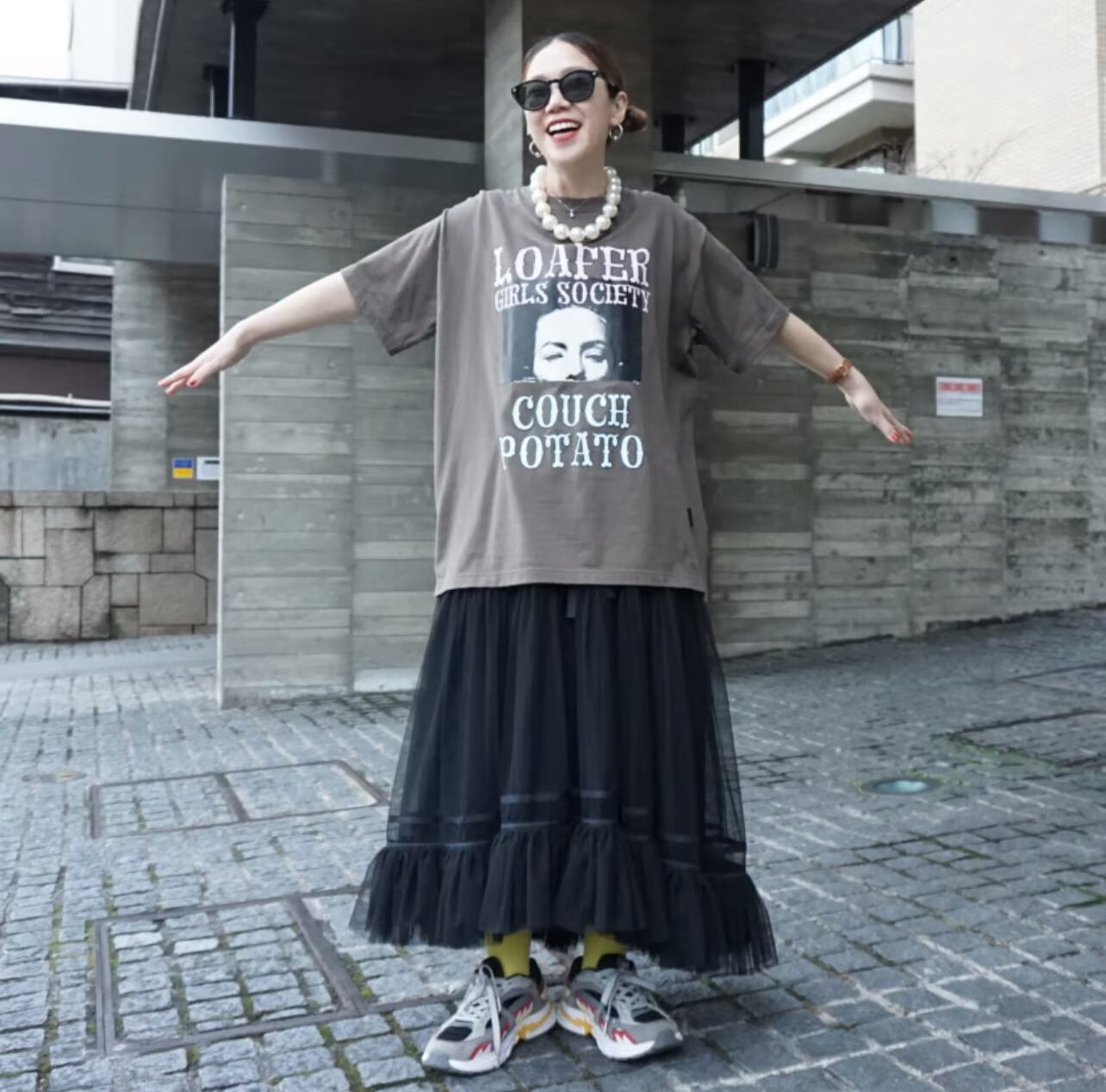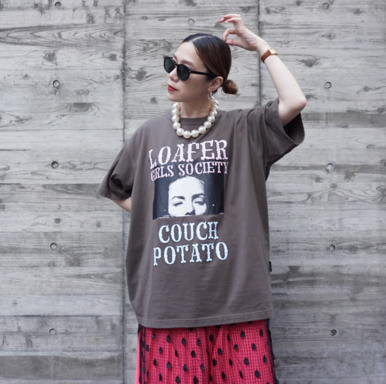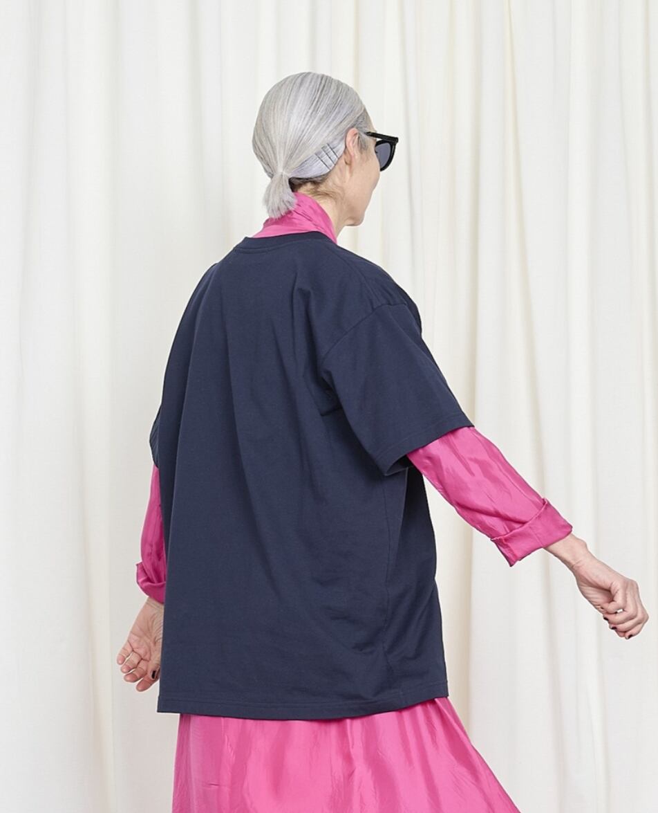 サイズはいつもの人気のビッグサイズです。Tシャツは毎回安定してとても人気ですが、今回はこのロゴがスタッフに大変好評だったので予約商品に選びました。男性にも女性にもとても人気の体型を選ばないサイズ感になっています。今年はシャツやポロシャツをインしたりして重ね着を楽しんでほしいと思っています。以前販売したビッグポケットシャツとのサイズバランスが好相性です。ややブラウンみのあるチャコールグレーでブラックほどの強い色味ではなく何にでも合わせやすそうなカラーです。ロゴが薄いピンクになっていてこのカラーリングが気に入っています。トーマスマグパイのTシャツはオリジナルボディで耐久性があるコットン100%。日本で作っています。今回はしっかりとした肉感にしていて身体のラインを拾いません。