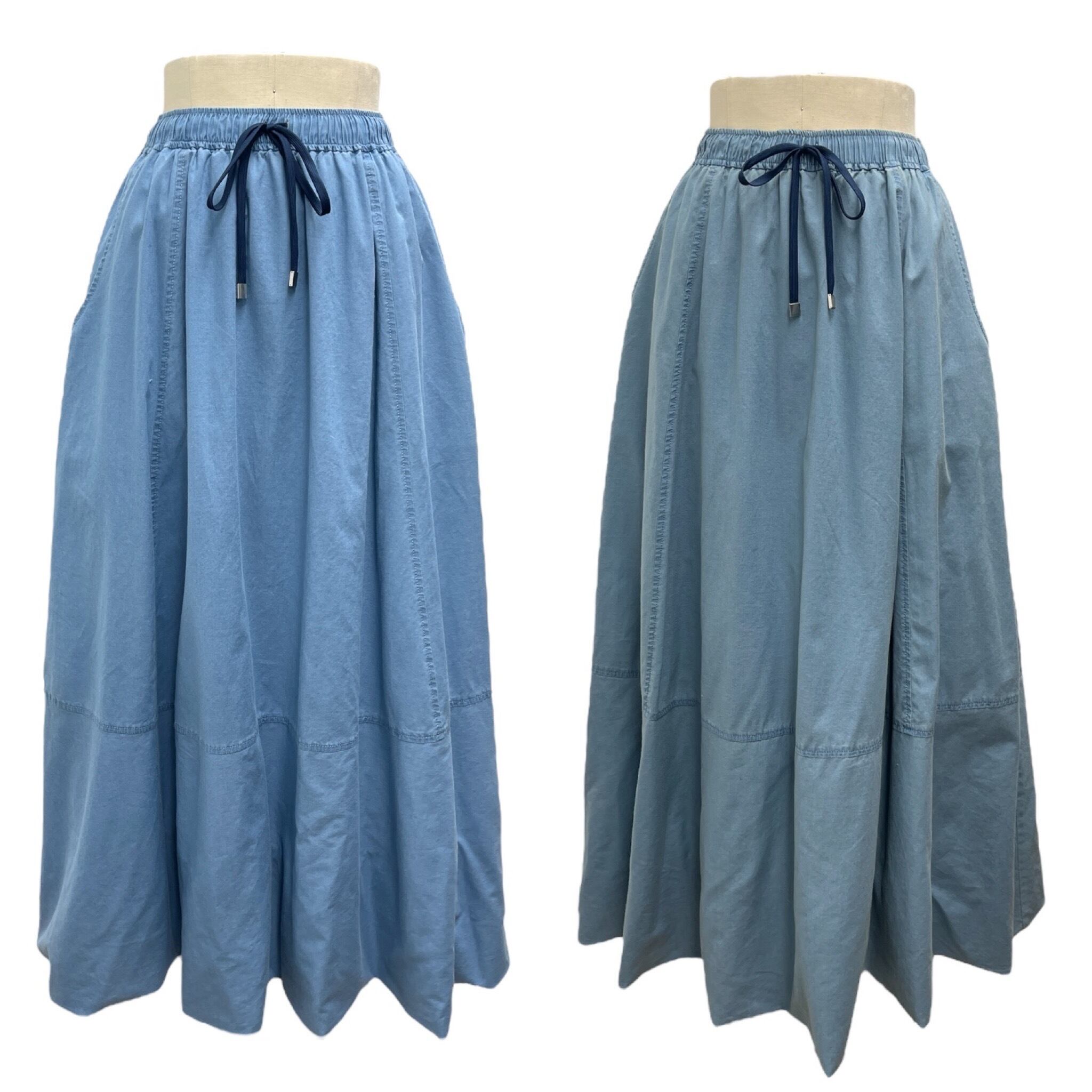 インディゴ染めふんわりロングスカート