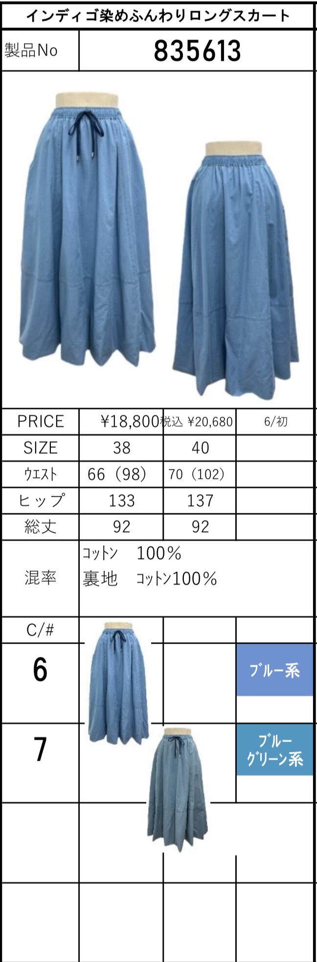予約販売【 ayane 】インディゴ染めふんわりロングスカート (835613) 6月中旬お届け