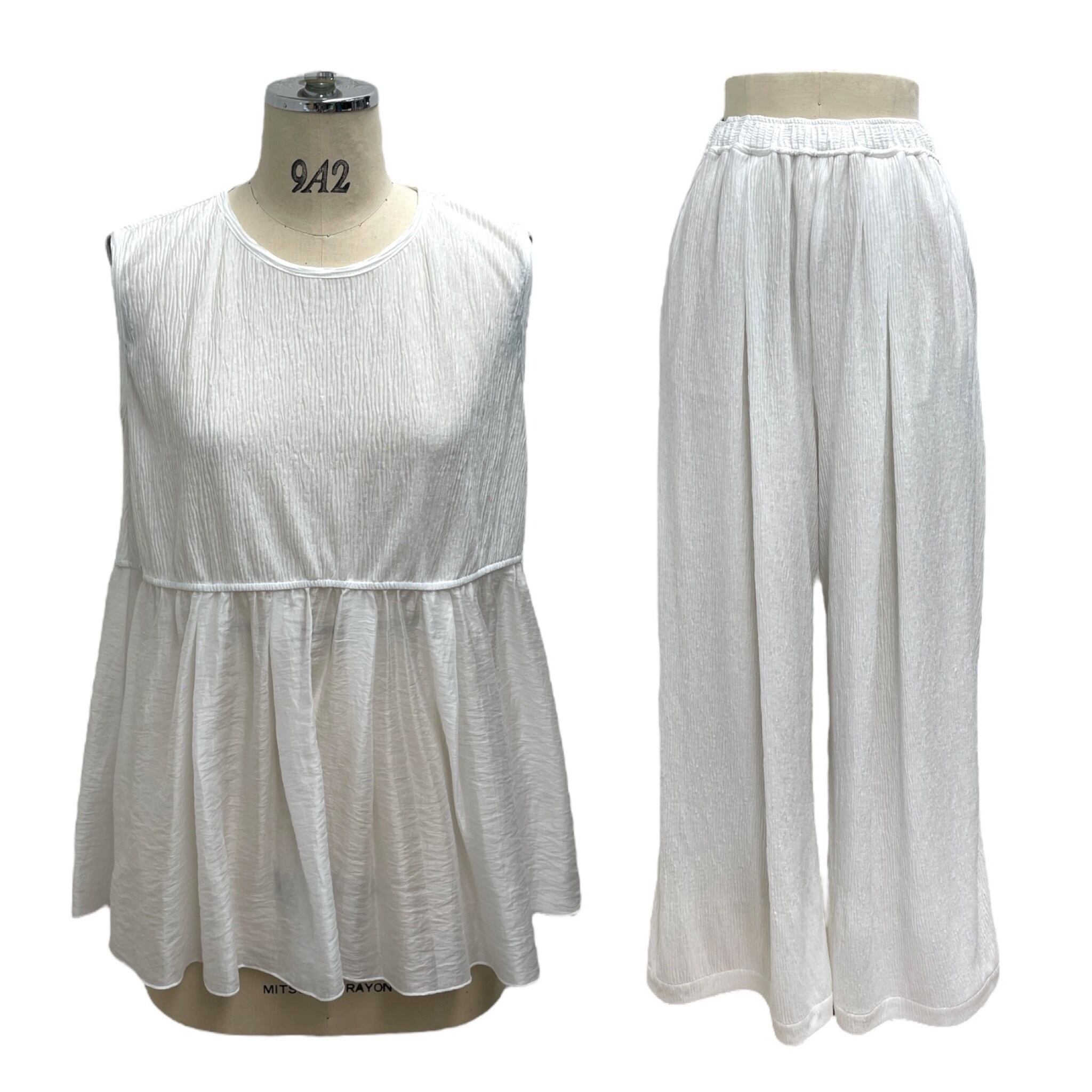 プリーツ加工カットソーワイドパンツ