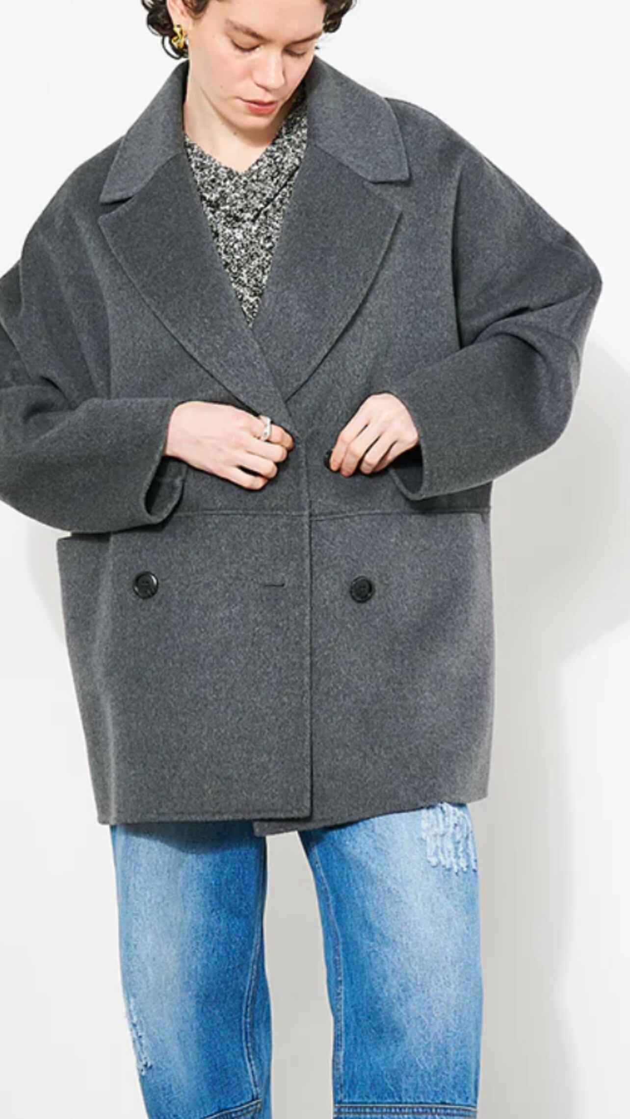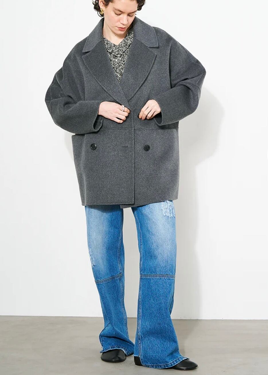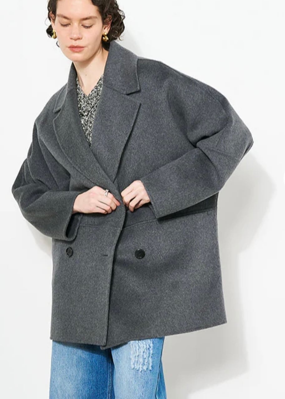 一般的なピーコートよりもゆったりとしたサイズ感で、リラックスした雰囲気を演出。