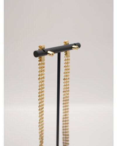 CHIGNONオリジナルデザイン ゆらゆらきらきらと耳元でしなやかに揺れるデザインはつけるだけで存在感抜群!女性らしさとシックな雰囲気を加えてくれる大人ピアスとなっております。オケージョンにはもちろん、シンプルなコーディネートのアクセントになるアイテムです。こちらのピアスには円柱キャッチと円盤キャッチ付きとなっておりますので、お好きなキャッチを付けてお愉しみください。同型イヤリングもご用意いたしております。
