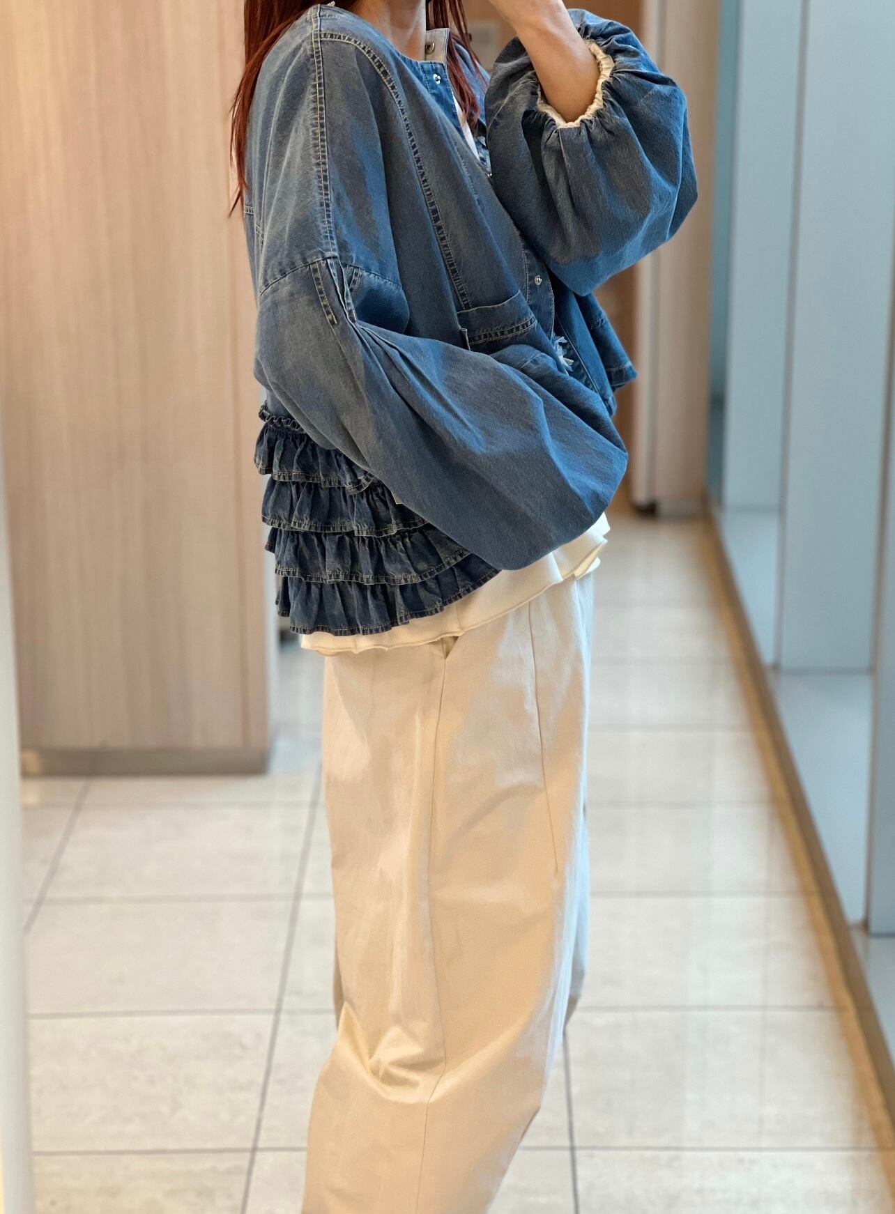 ダンガリーバックフリルブルゾン