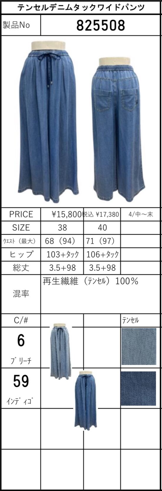 予約販売【 ayane 】テンセルデニムタックワイドパンツ (825508) 5月中旬お届け