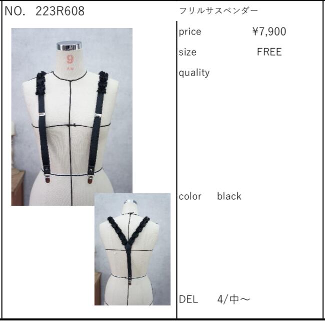 予約販売【 TRANOI. 】フリルサスペンダー (223R608) 4月中旬〜下旬入荷発送予定