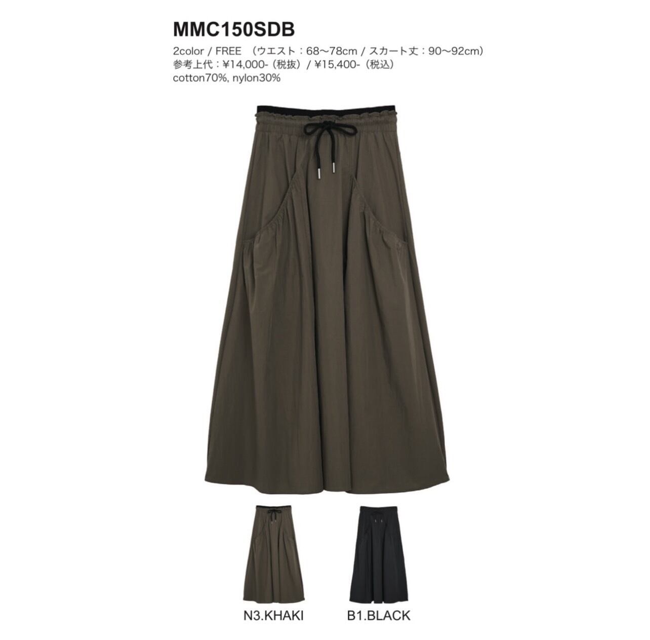 予約販売【 MICALLE MICALLE 】ドレープポケットスカート (MMC150SDB) 4月末入荷発送