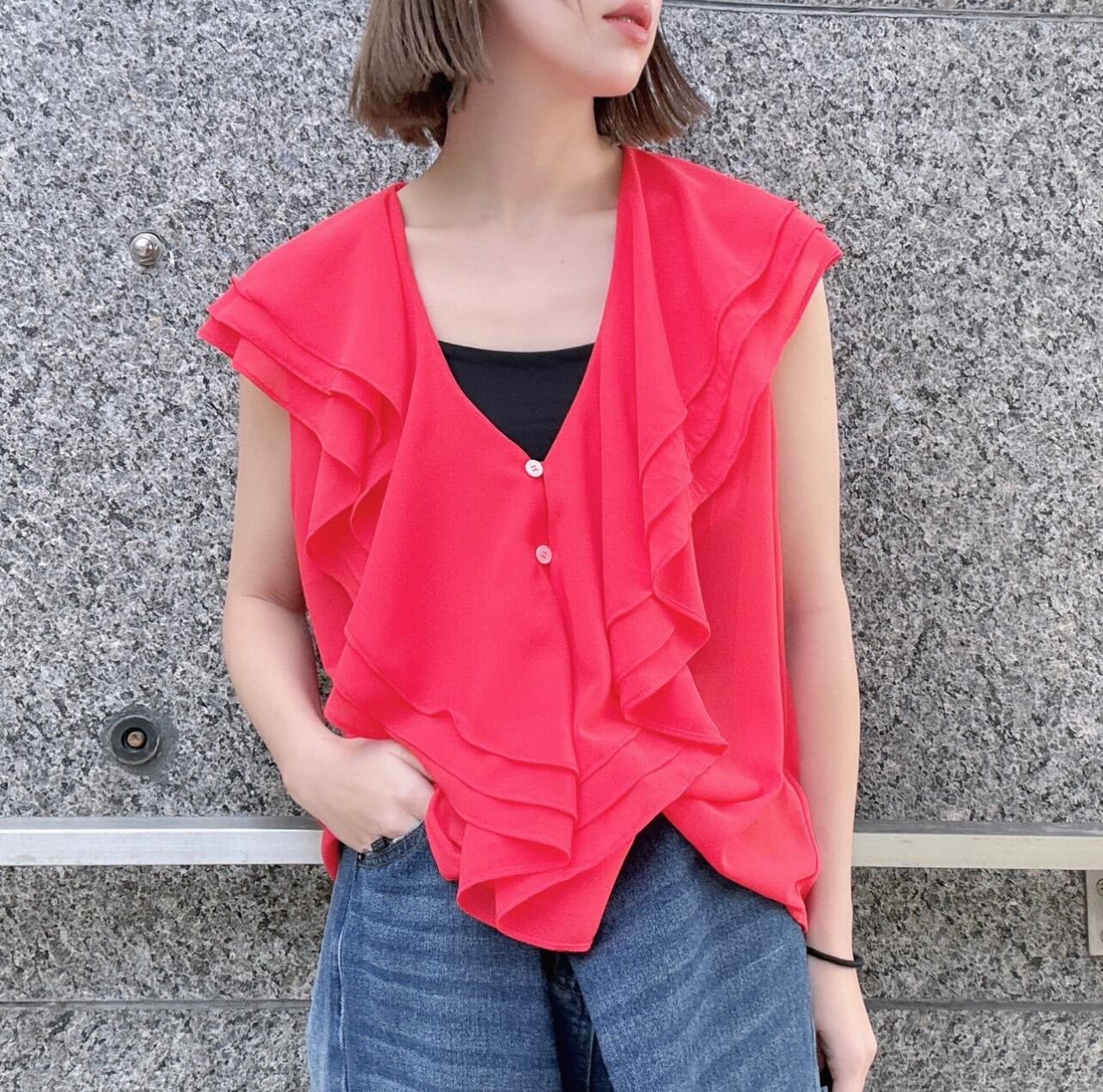 予約販売【 MICALLE MICALLE 】3段フリルシフォンブラウス (MMC121BDB) 4月末入荷発送