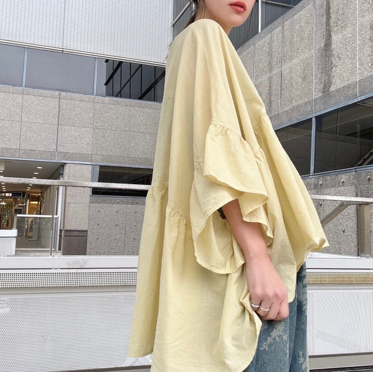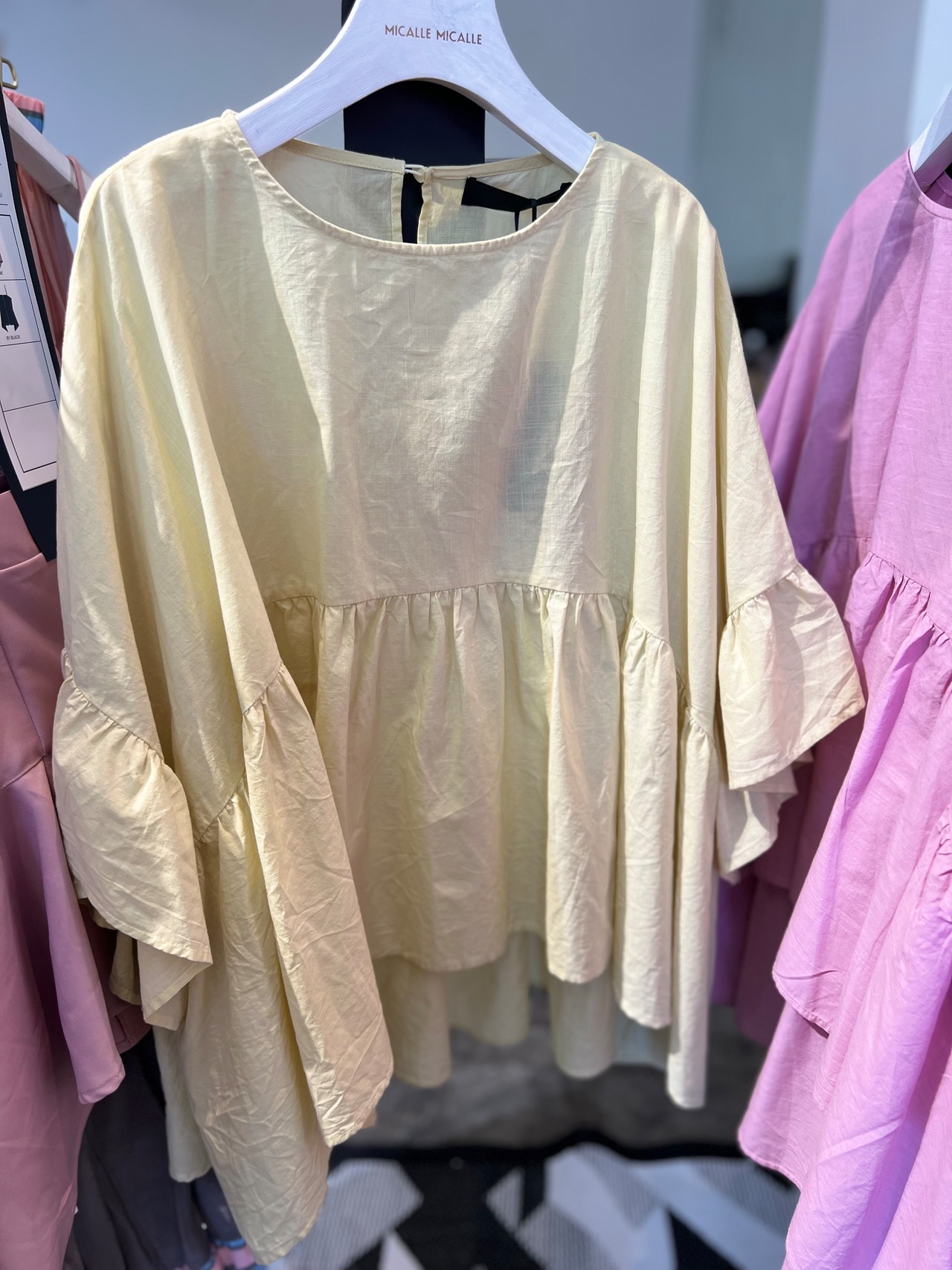 予約販売【 MICALLE MICALLE 】袖フレアシアートップス (MMC141BDB) 4月末入荷発送