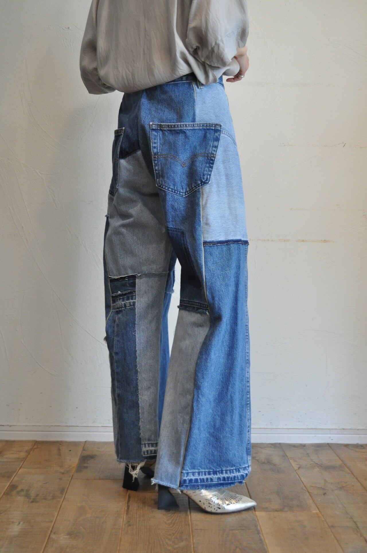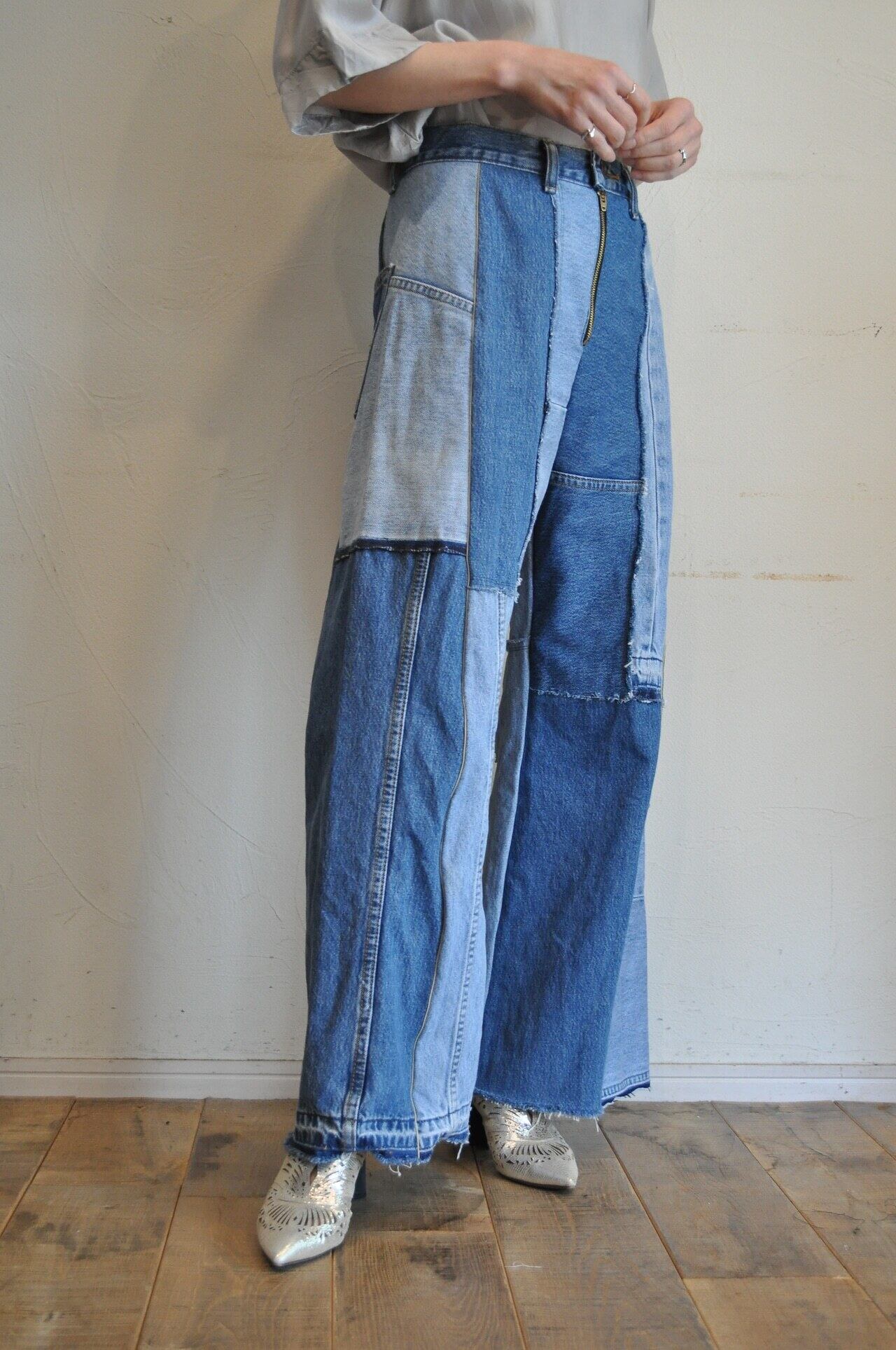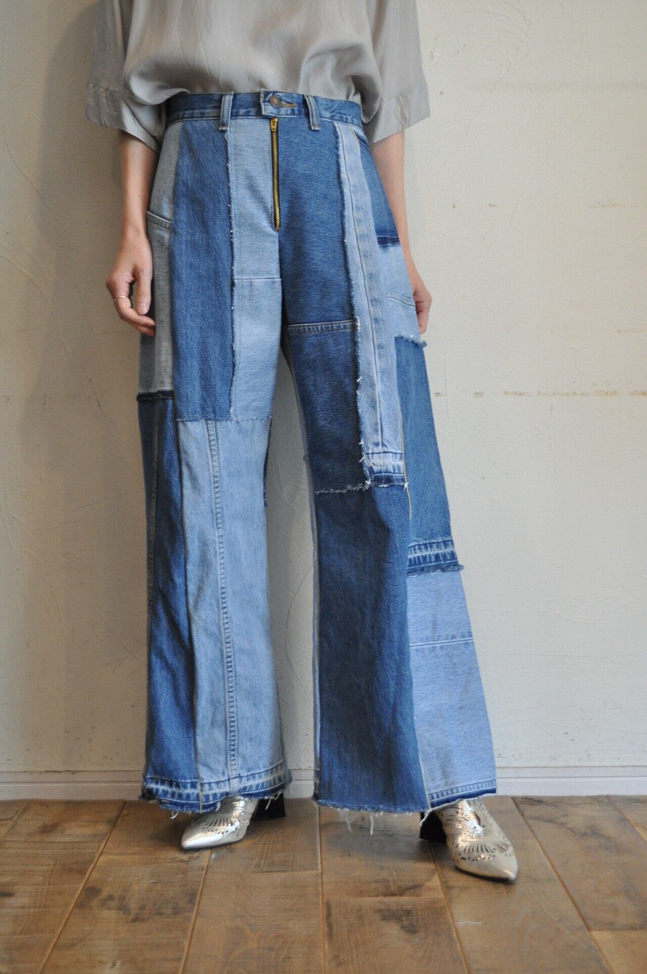 古着のデニムを解体しパッチワークしたこだわりの詰まったフレアパンツです。