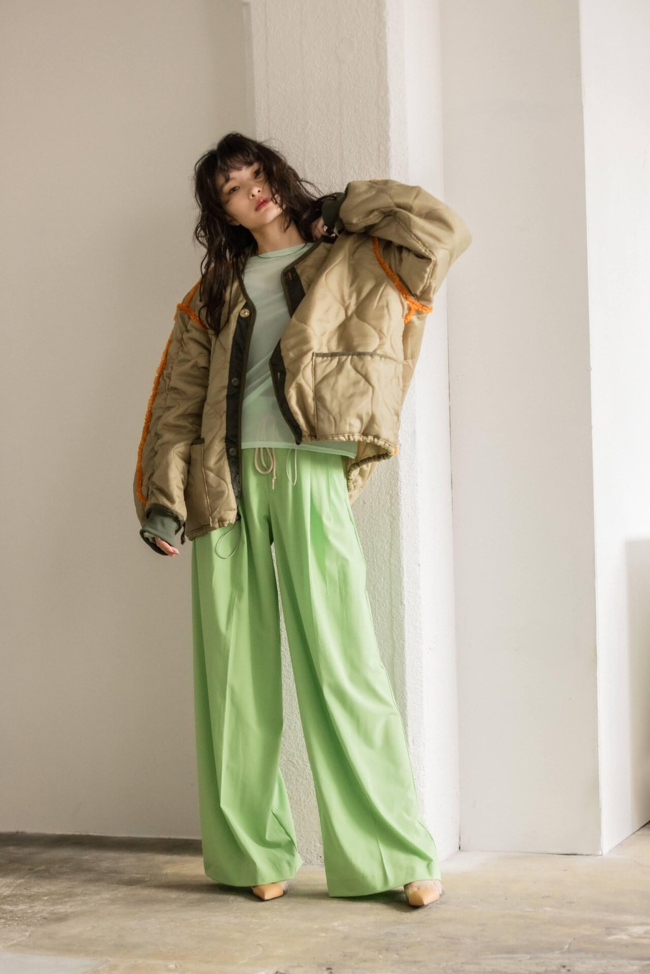 丸みのあるシルエットに仕上げ、メンズライクながらも女性らしさを感じるバランスに。