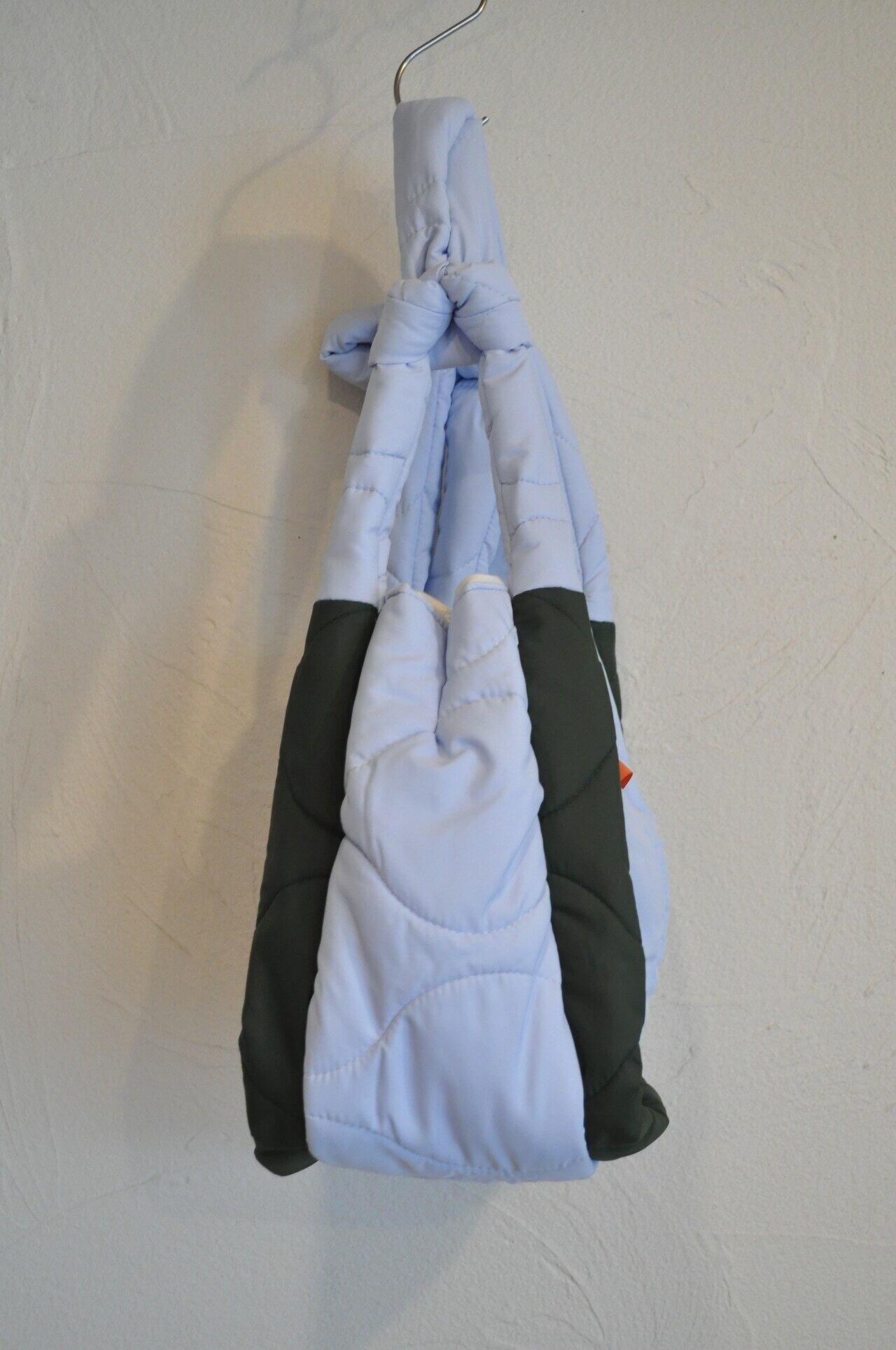 程よいボリューム感と、柔らかなフォルムがコーディネートに抜け感をプラスします。 持ち手部分は自由に取り外せて結び目をアクセントに調節可能です。
