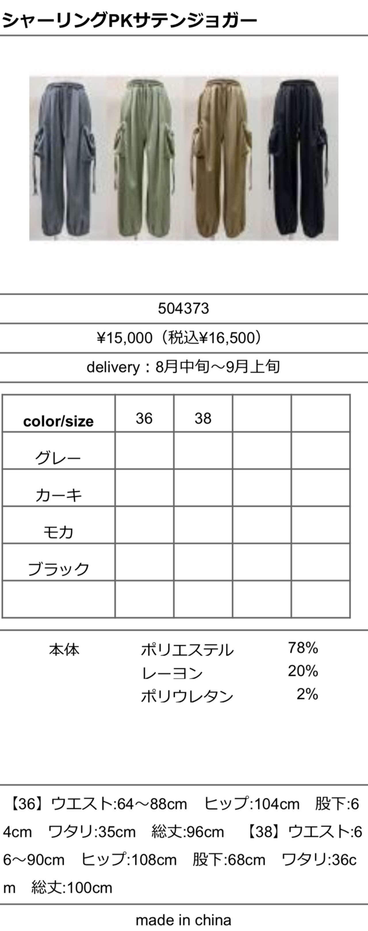⭐︎予約販売【 CYAN TOKYO 】シャーリングPKサテンジョガー (504373) 9月お届け