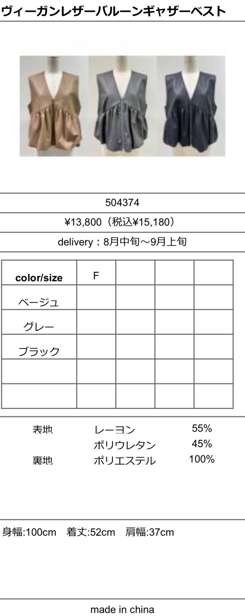 ⭐︎予約販売【 CYAN TOKYO 】ヴィーガンレザーバルーンギャザーベスト (504374) 9月お届け
