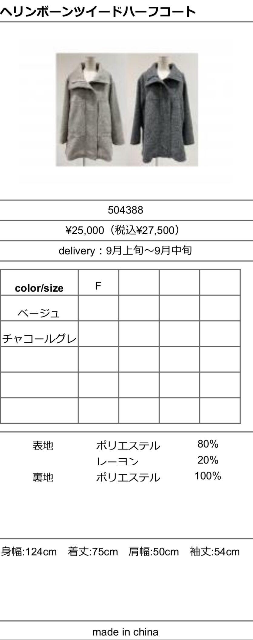⭐︎予約販売【 CYAN TOKYO 】ヘリンボーンツイードハーフコート (504388) 9月お届け