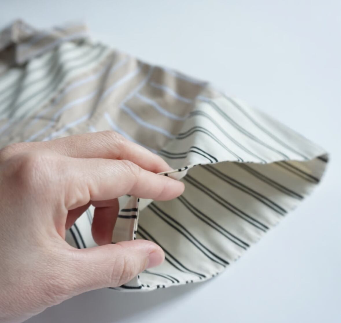 身長が小さい方は、袖をひと曲げ出来るように切り替えていて縫い目のロックが出ないようにパターンを作っています。