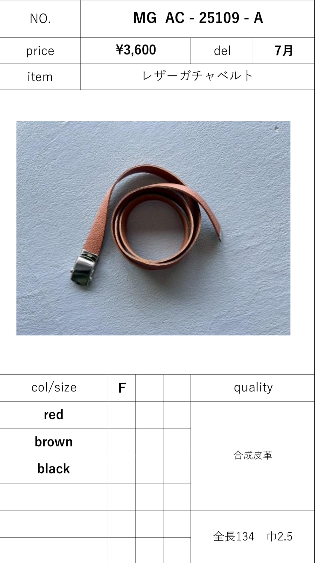 予約販売【 MARGAUX 】レザーガチャベルト (MG AC - 25109 - A) 7月入荷発送予定