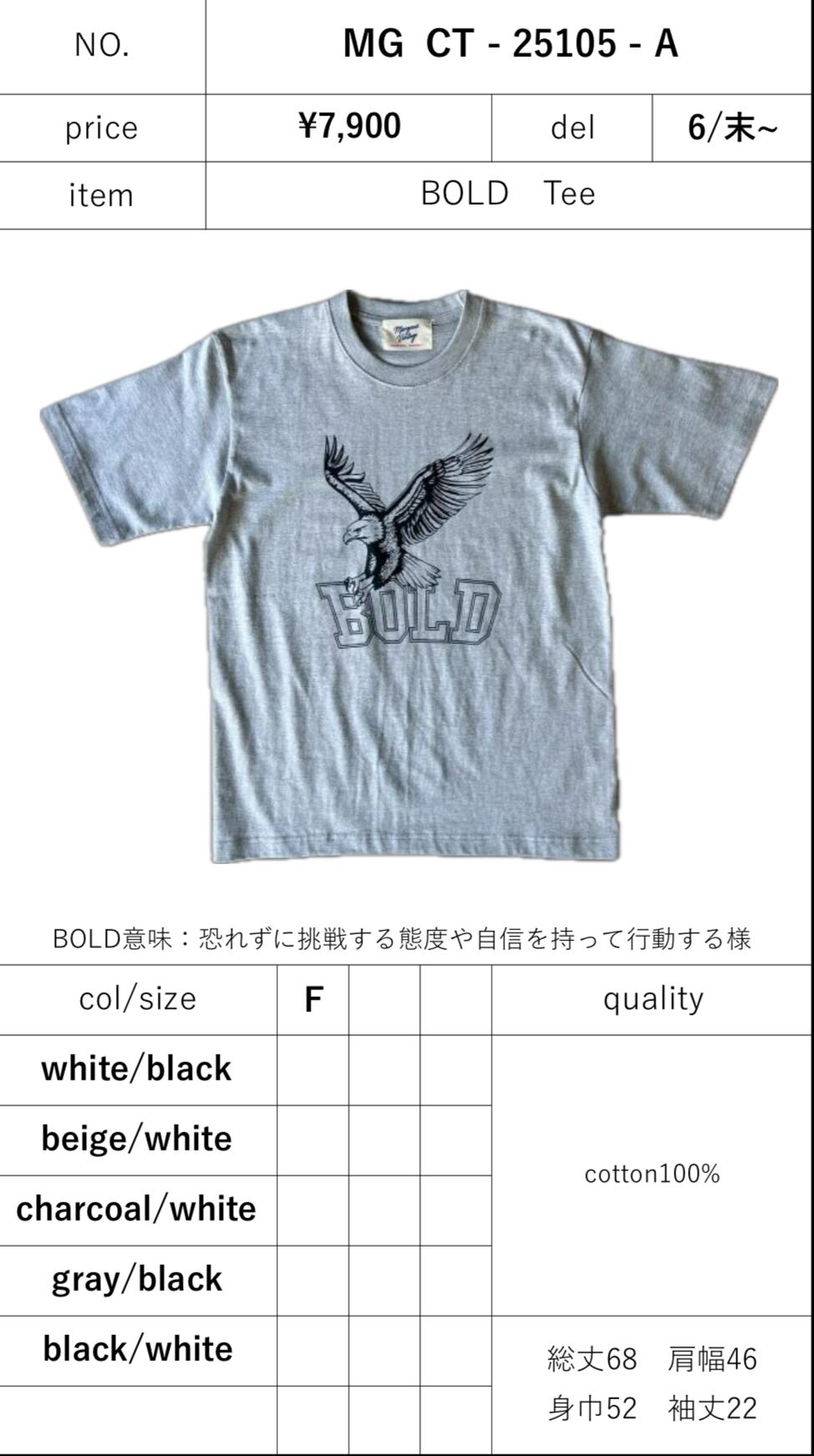 予約販売【 MARGAUX 】BOLD Tee (MG CT - 25105 - A) 6月入荷発送予定