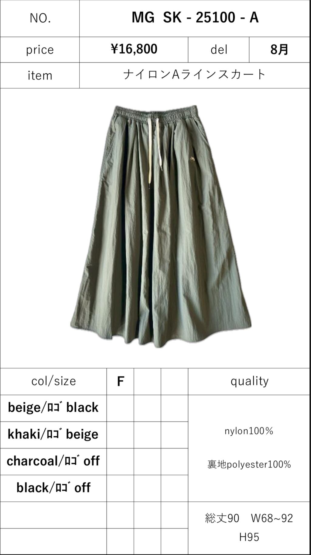 予約販売【 MARGAUX 】ナイロンAラインスカート (MG SK - 25100 - A) 8月入荷発送予定
