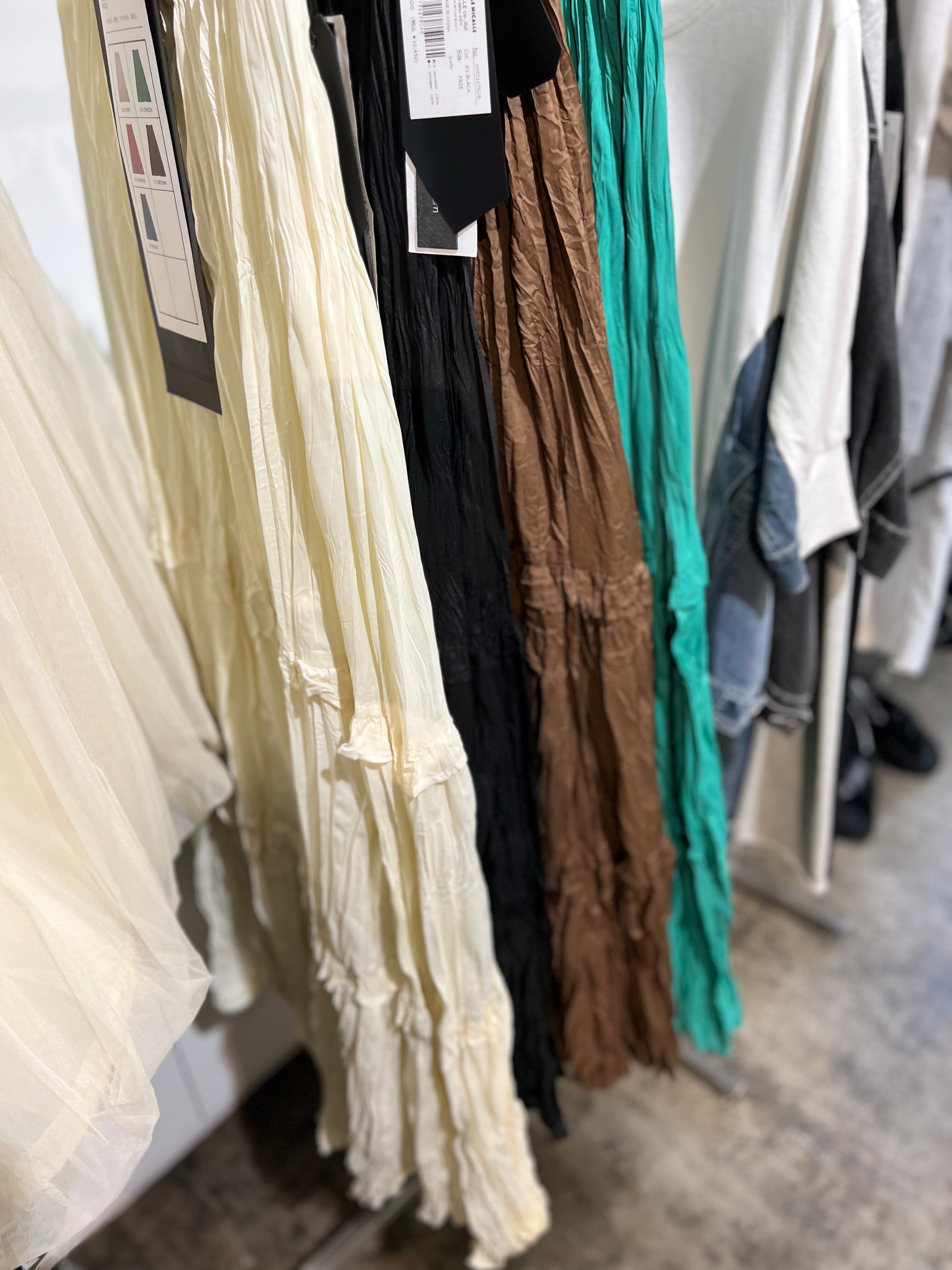 予約販売【 MICALLE MICALLE 】クリンクルロングスカート (MMD107SDB) 5月下旬入荷お届け予定