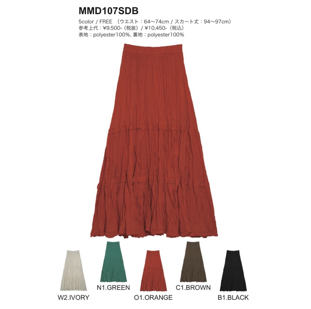 ウエスト:64~74cm/スカート丈:94~97cm