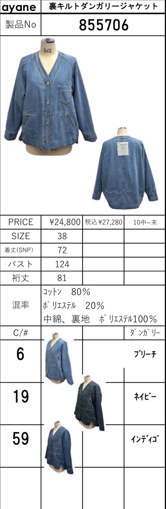 予約販売【 ayane 】裏キルトダンガリージャケット (855706) 10月頃お届け