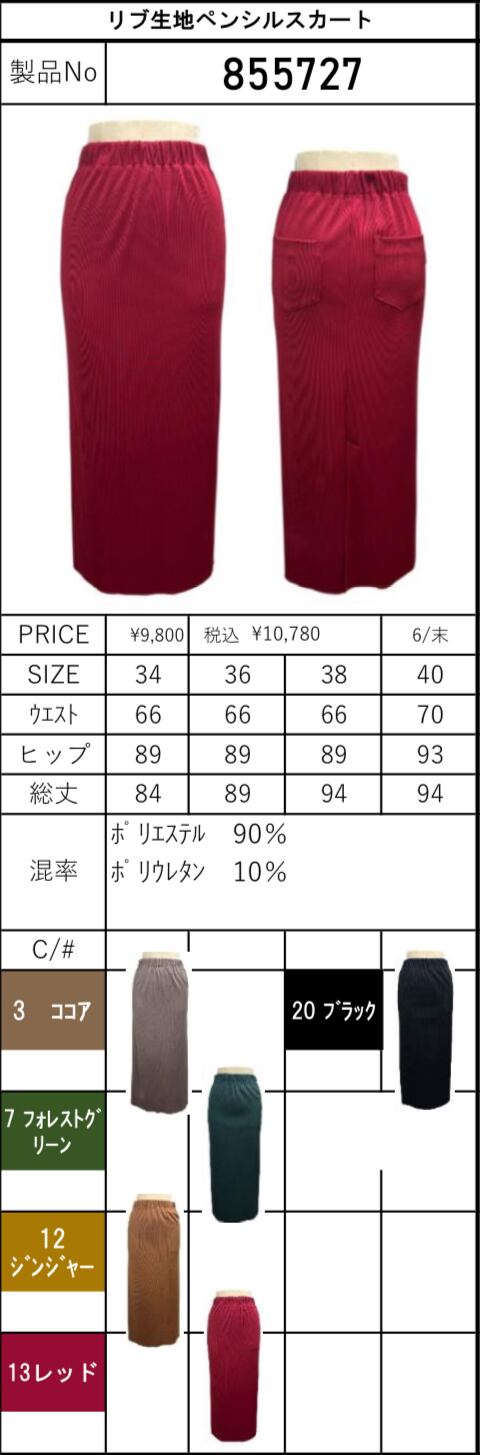 予約販売【 ayane 】リブ生地ペンシルスカート (855727) 6月頃お届け