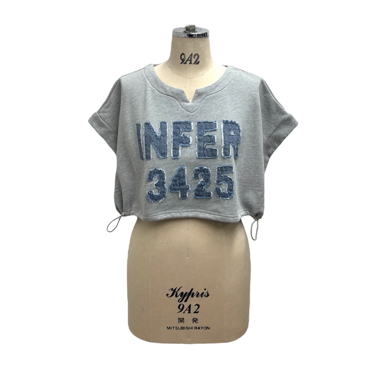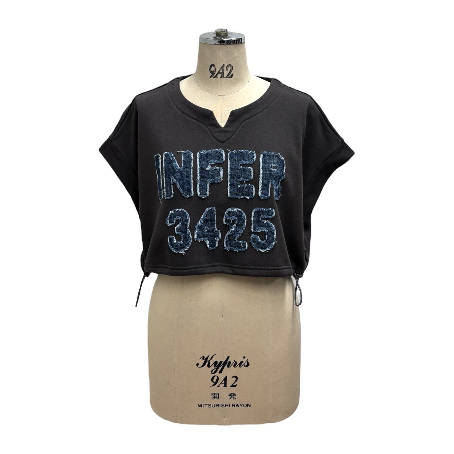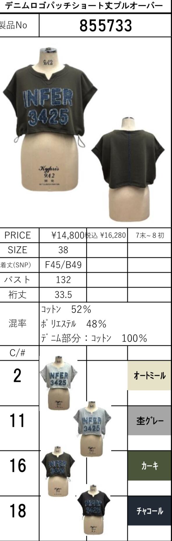 予約販売【 ayane 】デニムロゴパッチショート丈プルオーバー (855733) 8月頃お届け