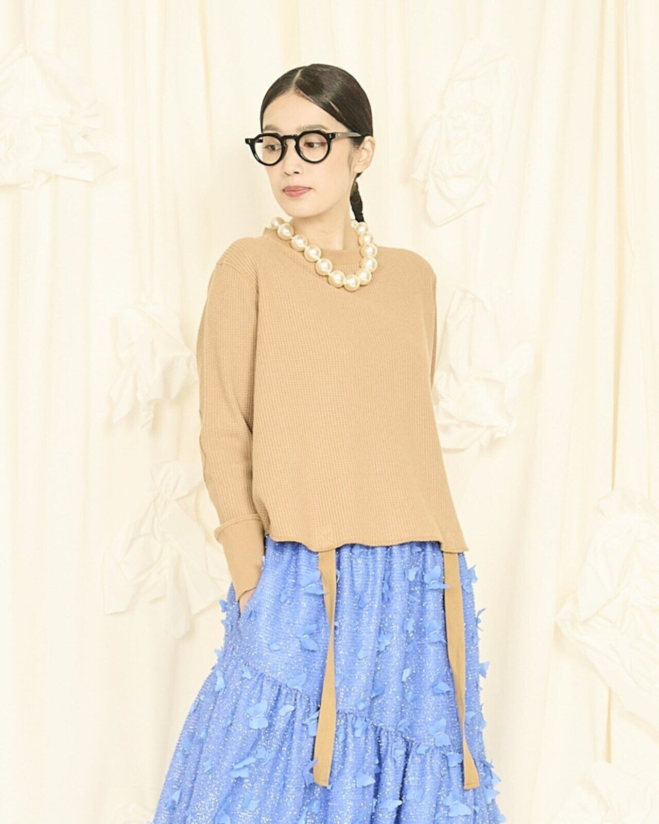 ⚫️2wayワッフルリボントップス