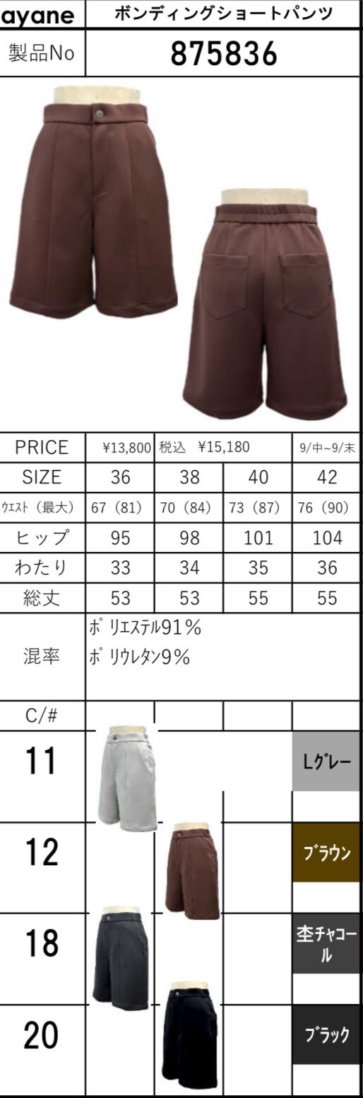 予約販売【 ayane 】ボンディングショートパンツ (875836) 9月下旬頃お届け