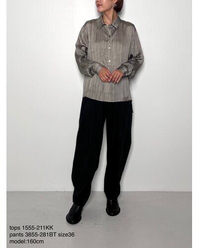 シワ加工が入った素材を使用した、ベーシックシャツです。