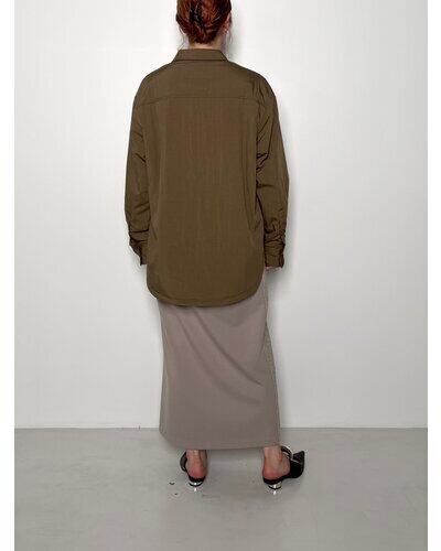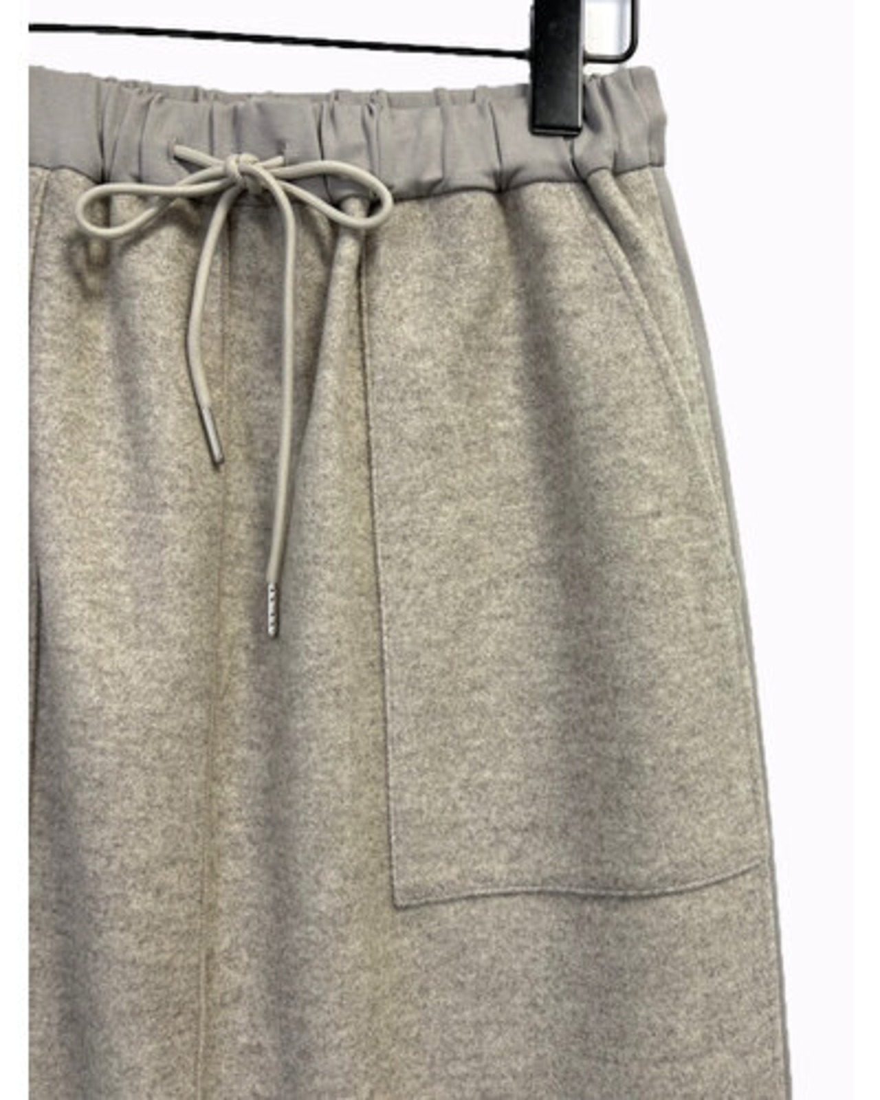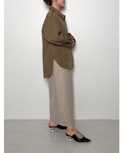 布帛のようなきちんと感がありながら、ニット特有の伸縮性と柔らかさを兼ね揃えた カットソー素材のダブルフェイスを使用しました。後身頃にはポンチ素材を使用、表情の異なる異素材使いがアクセントになっています。