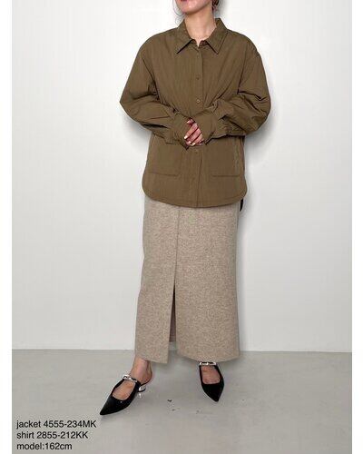 CFに深めにいれたメロウ始末のスリットで、女性らしい軽い仕上がりになっています。同素材のジレとのセットアップもおすすめです。