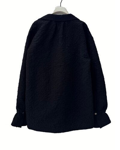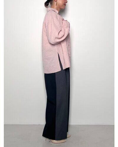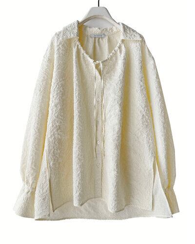 ストレッチの効いたジャガード素材を使用した、デザインブラウス。