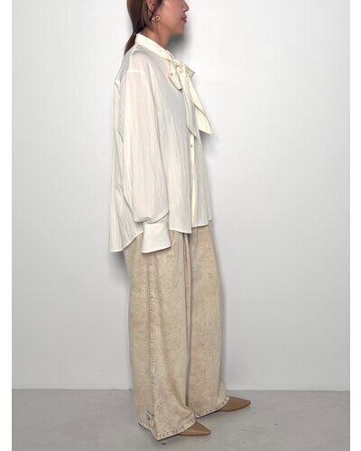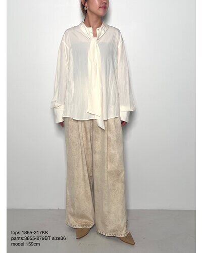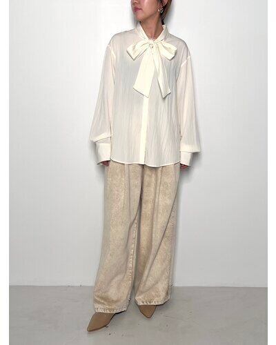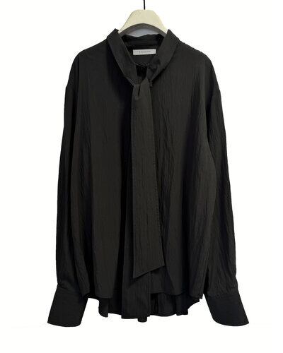 しなやかな落ち感と上品な光沢感が魅力的なレーヨン混の素材を使用したボウタイカラーシャツ。