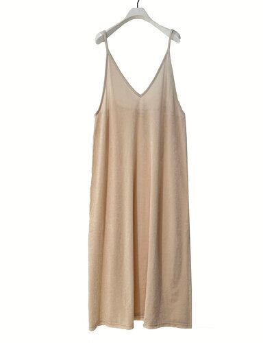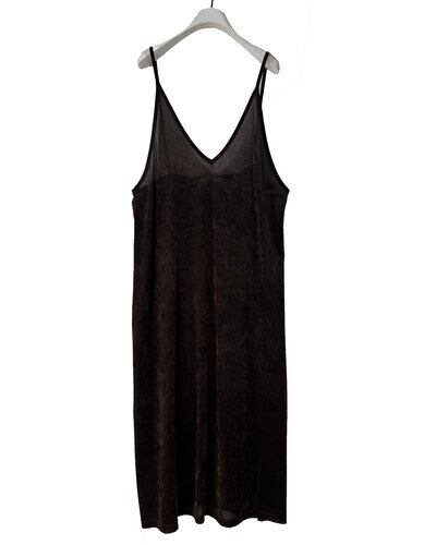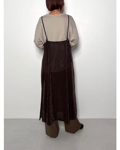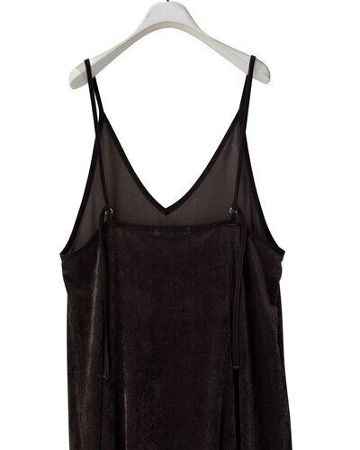 程よい透け感が特徴のメッシュのベロア素材のキャミワンピースになります。