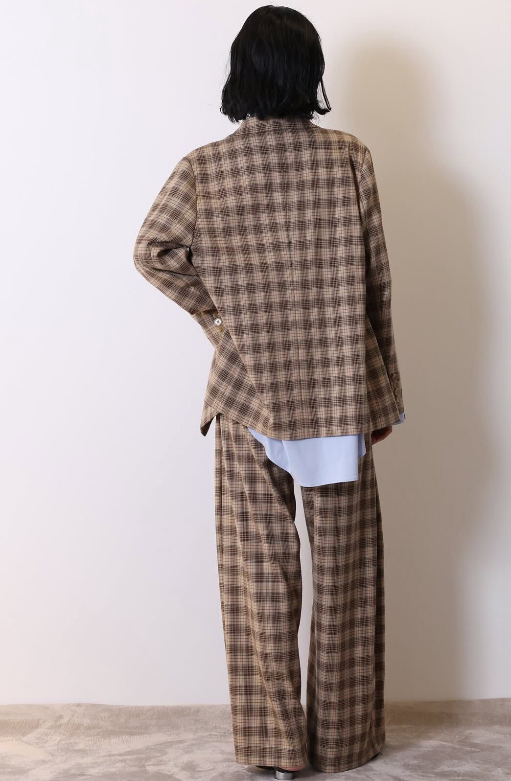 チェックで作ることで、サイドのタックがより生きるデザインになっています。