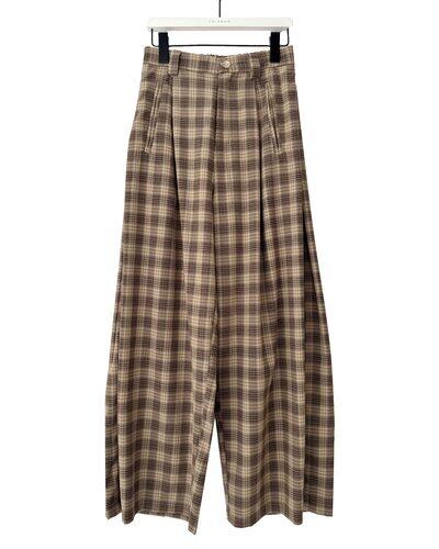 きれいめな大人っぽいチェック素材を使用した、サイドのタックがポイントのワイドパンツです。
