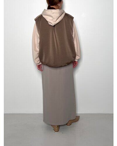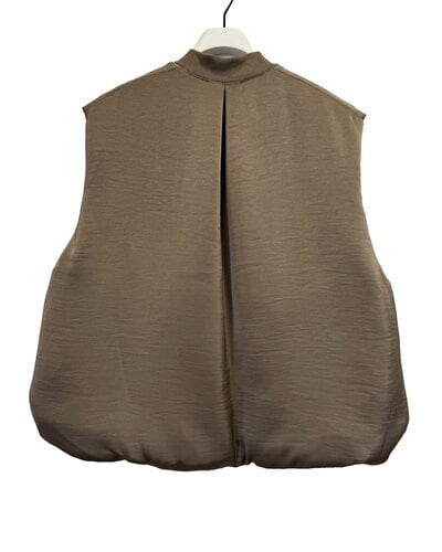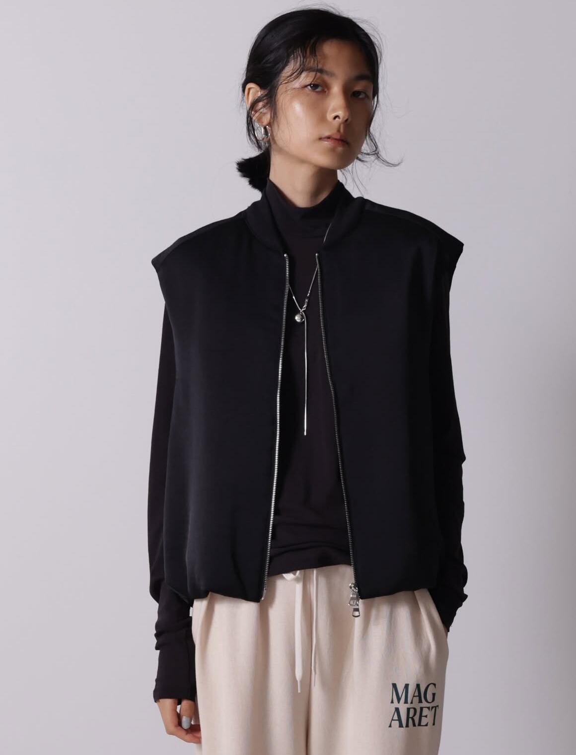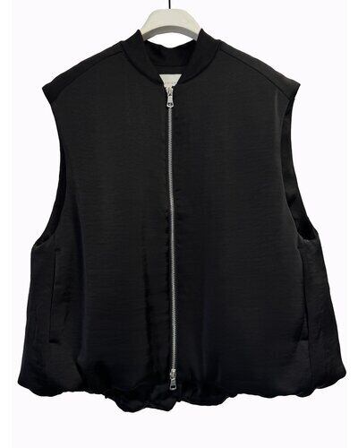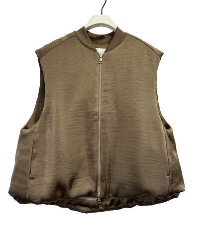 程よい光沢感のサテンを使用した、中綿入りベストです。