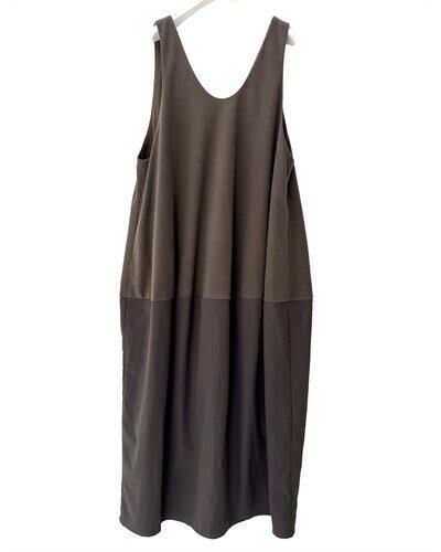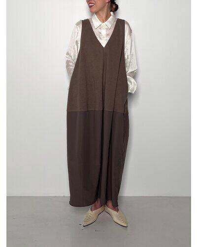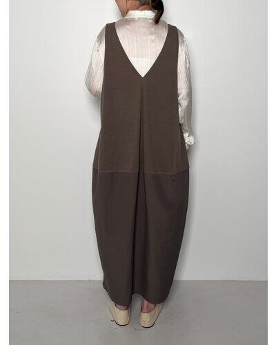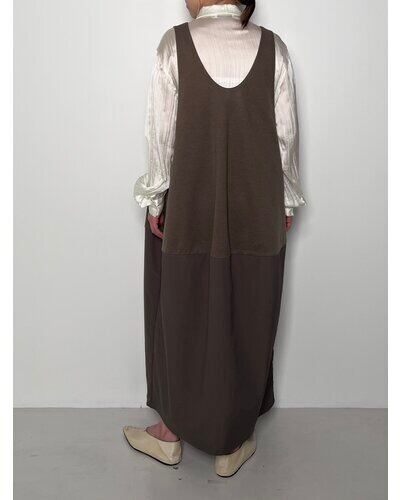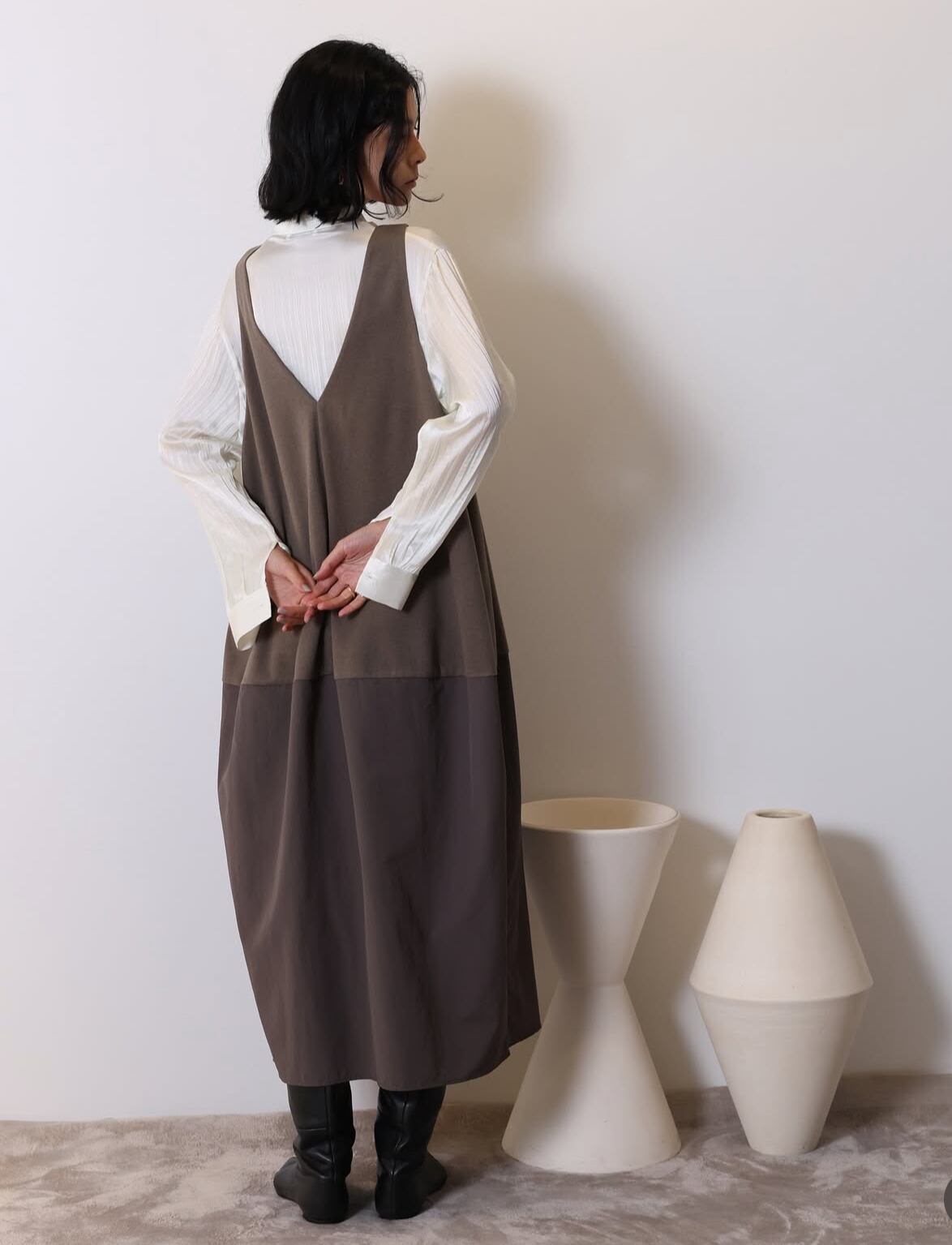 異素材をドッキングさせたコクーンシルエットの2WAYワンピース。