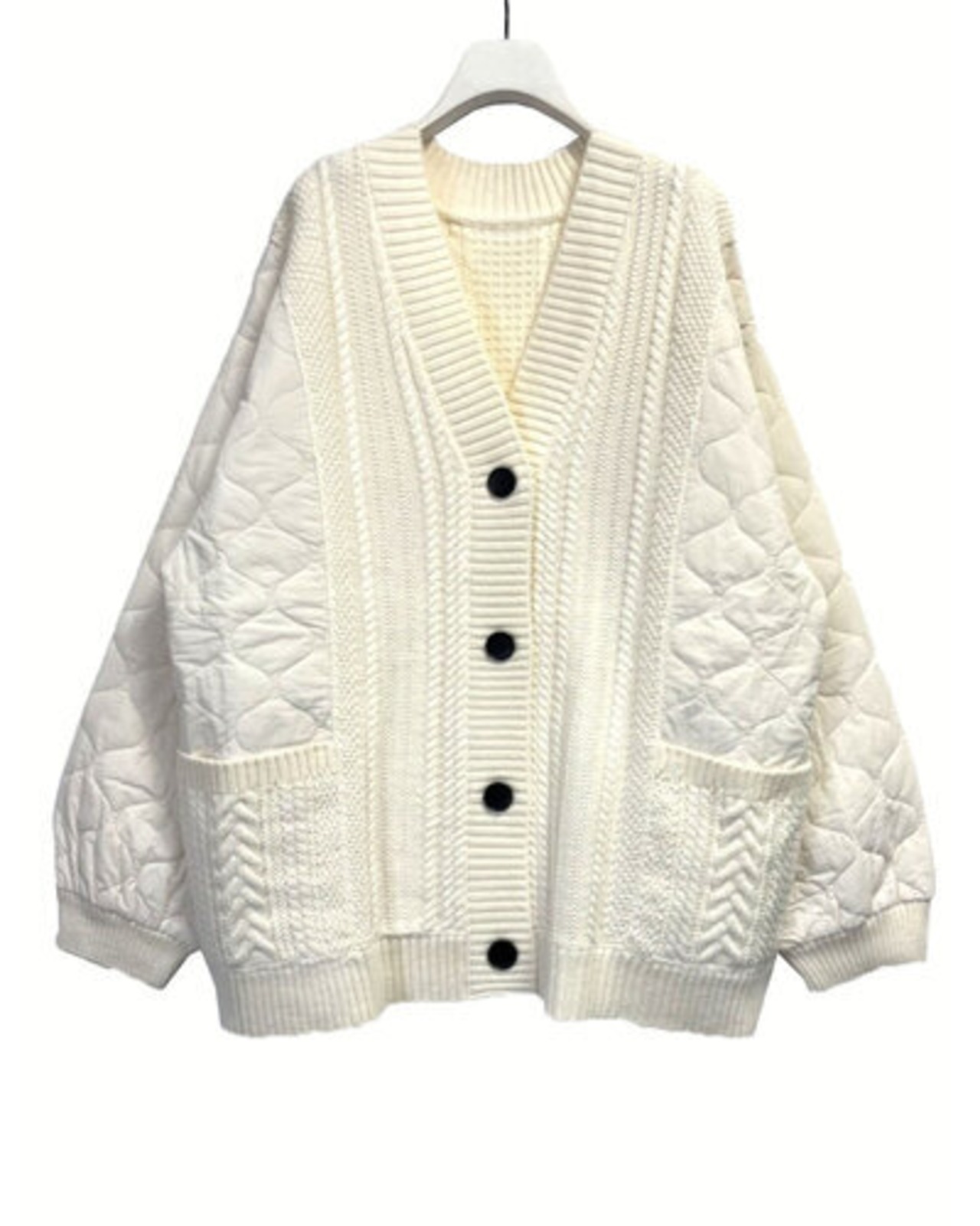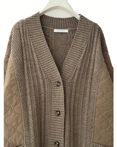 瓢箪柄のキルティングに前身頃と後ろ身頃の一部にケーブル柄を入れたニットをドッキングさせました。