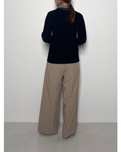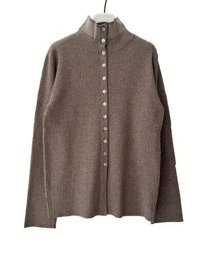 衿の釦を開けてシャツのような着こなしも出来る、マルチウェイニットです。