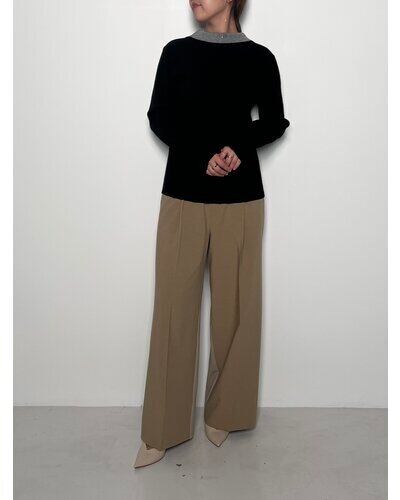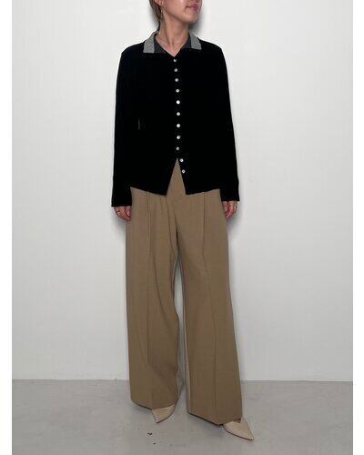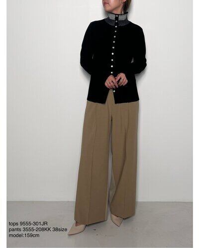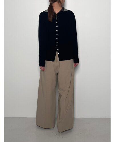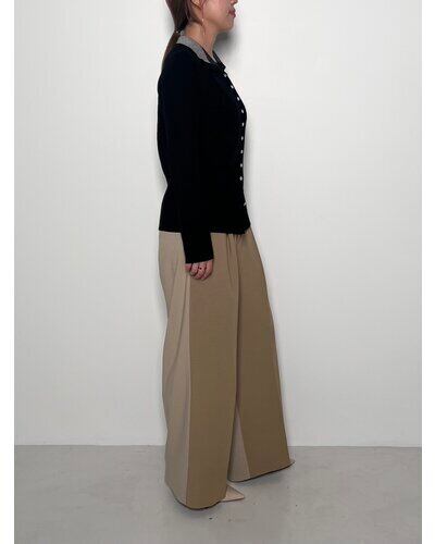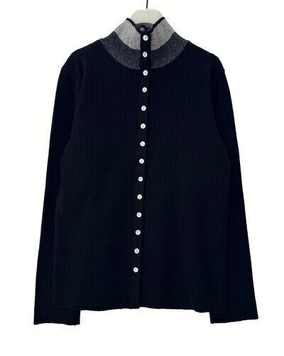 G/BEIGEとBLACKは衿を配色にしているので、シャツやワンピースのインに合わせるとコーディネートが新鮮になります!身頃はボディラインが出にくい、RIB見えする編地で作っているので、一枚でもシルエットを気にすることなく着て頂けます。